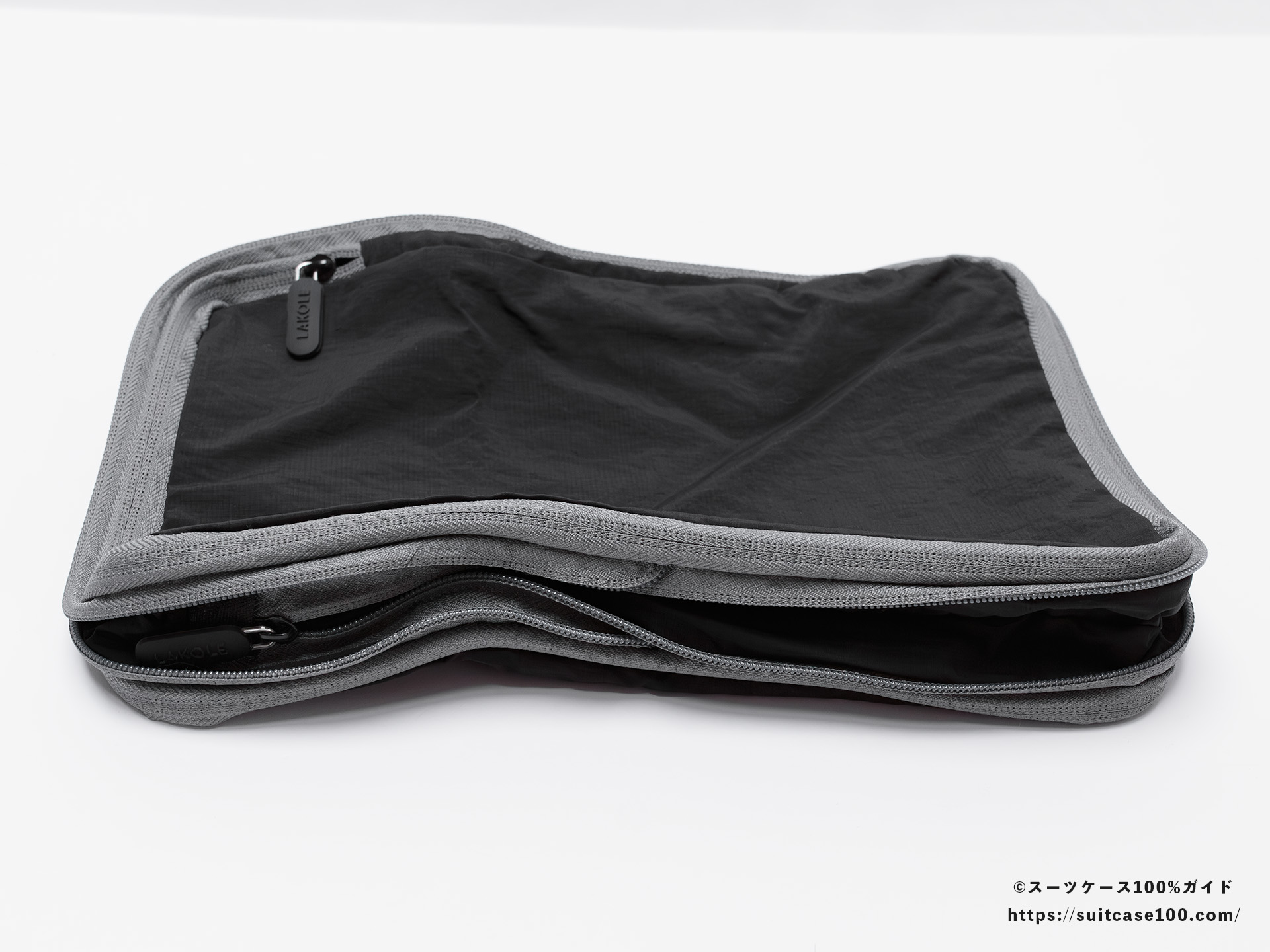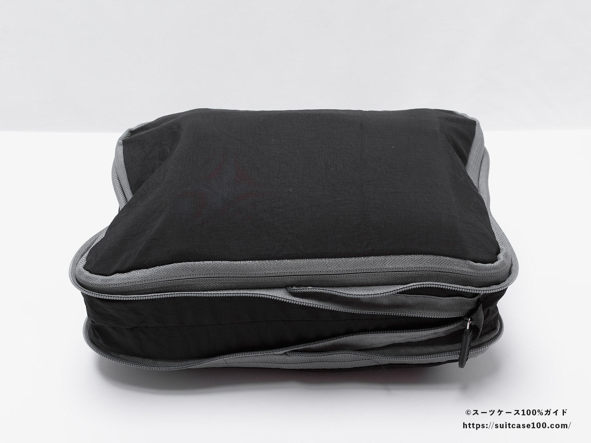 中央の圧縮用ファスナーを閉めると圧縮されます。