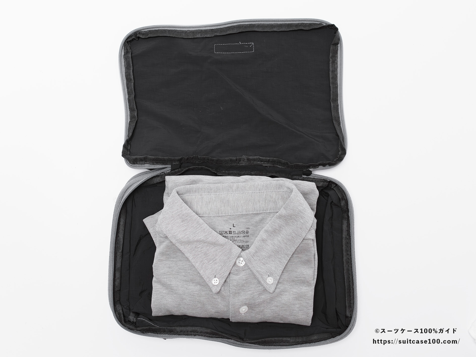 Lサイズのメンズポロシャツを畳んで入れた図です。