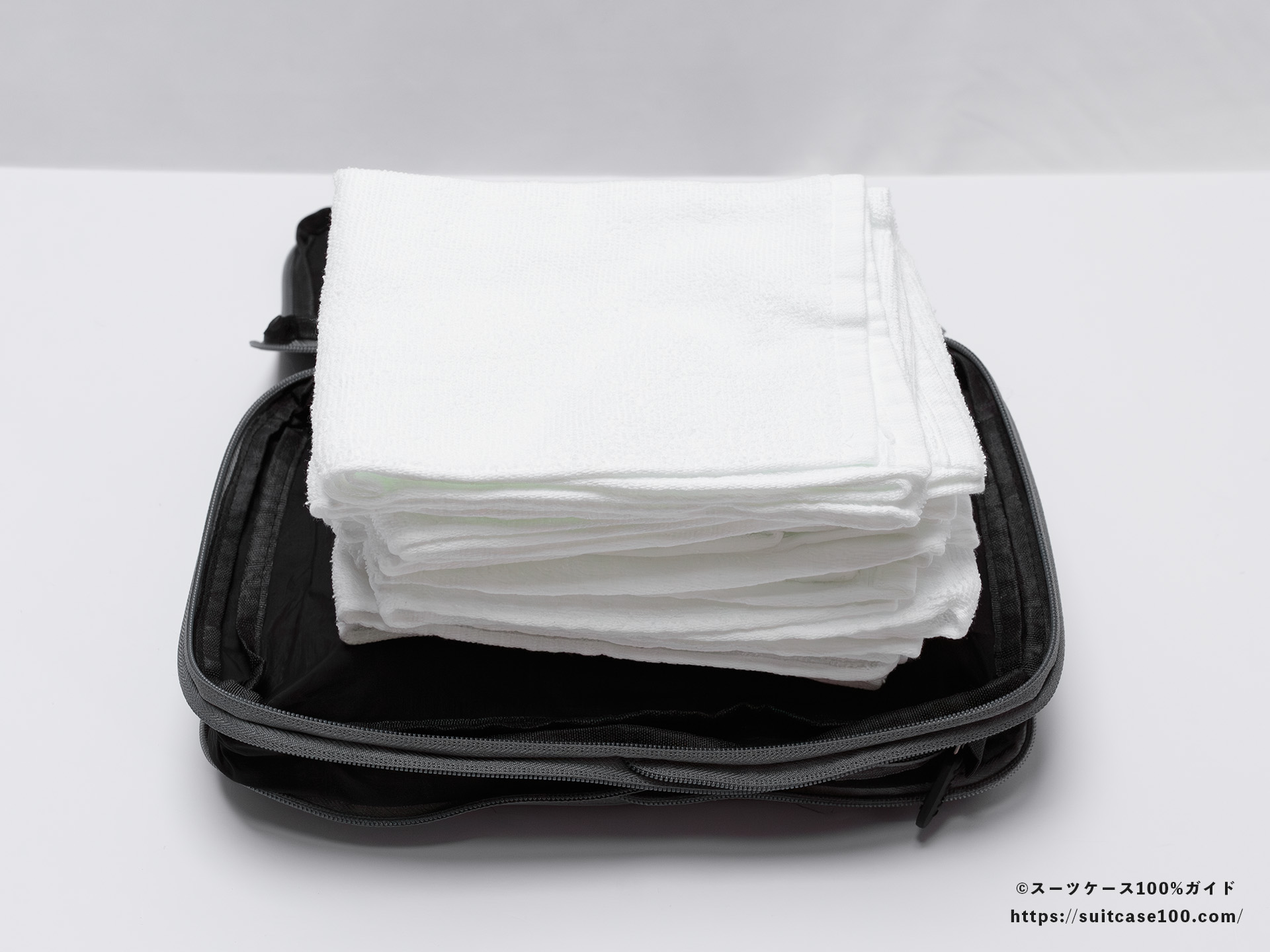 3回折ったフェイスタオルを片面に7枚ずつ枚入れたです。