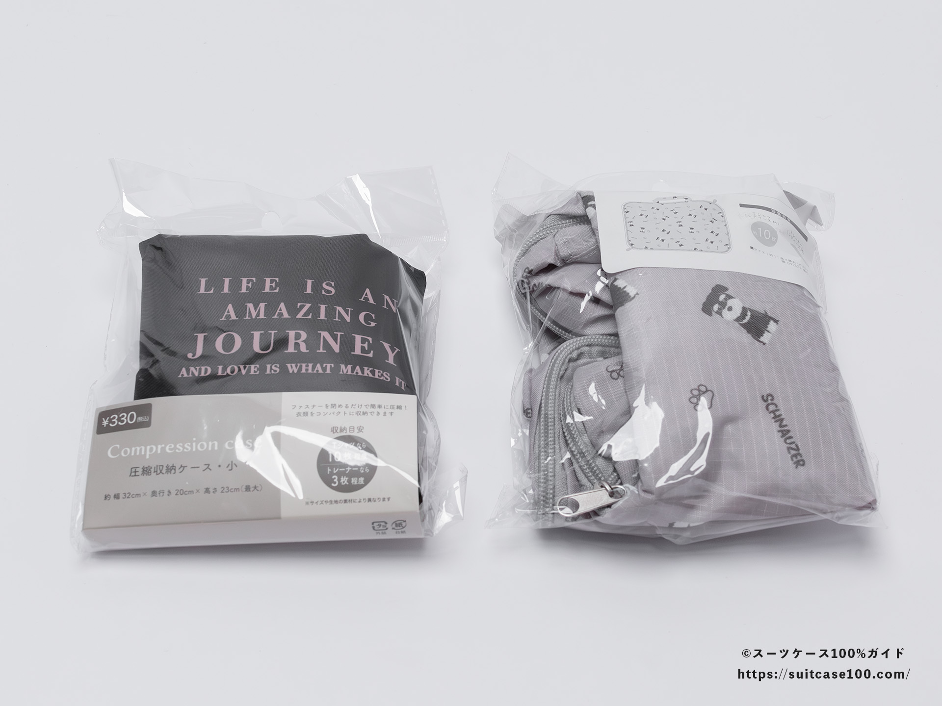 illusie300で販売されている3種類の圧縮バッグの2種類を購入。