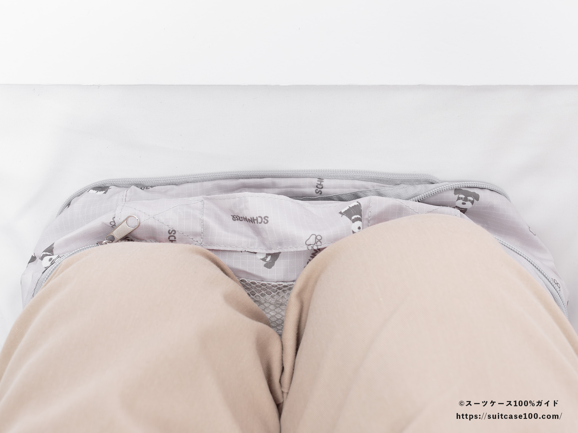 体重で押さえて圧縮用ファスナーを閉めていくと楽。