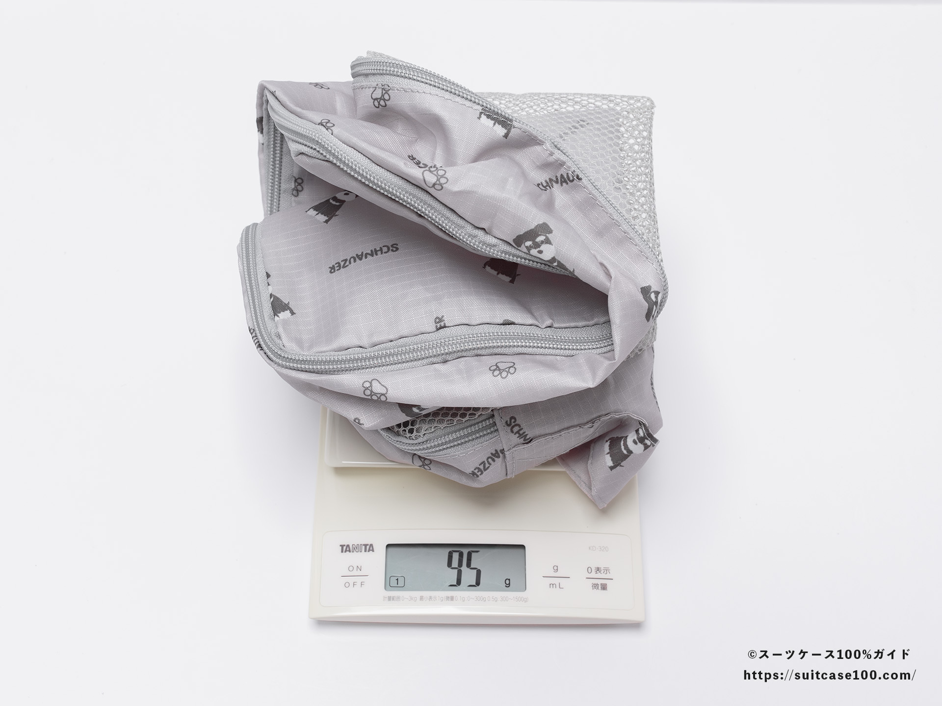 安物のダイソーなら75g程度なので、これは軽めの圧縮ポーチです。