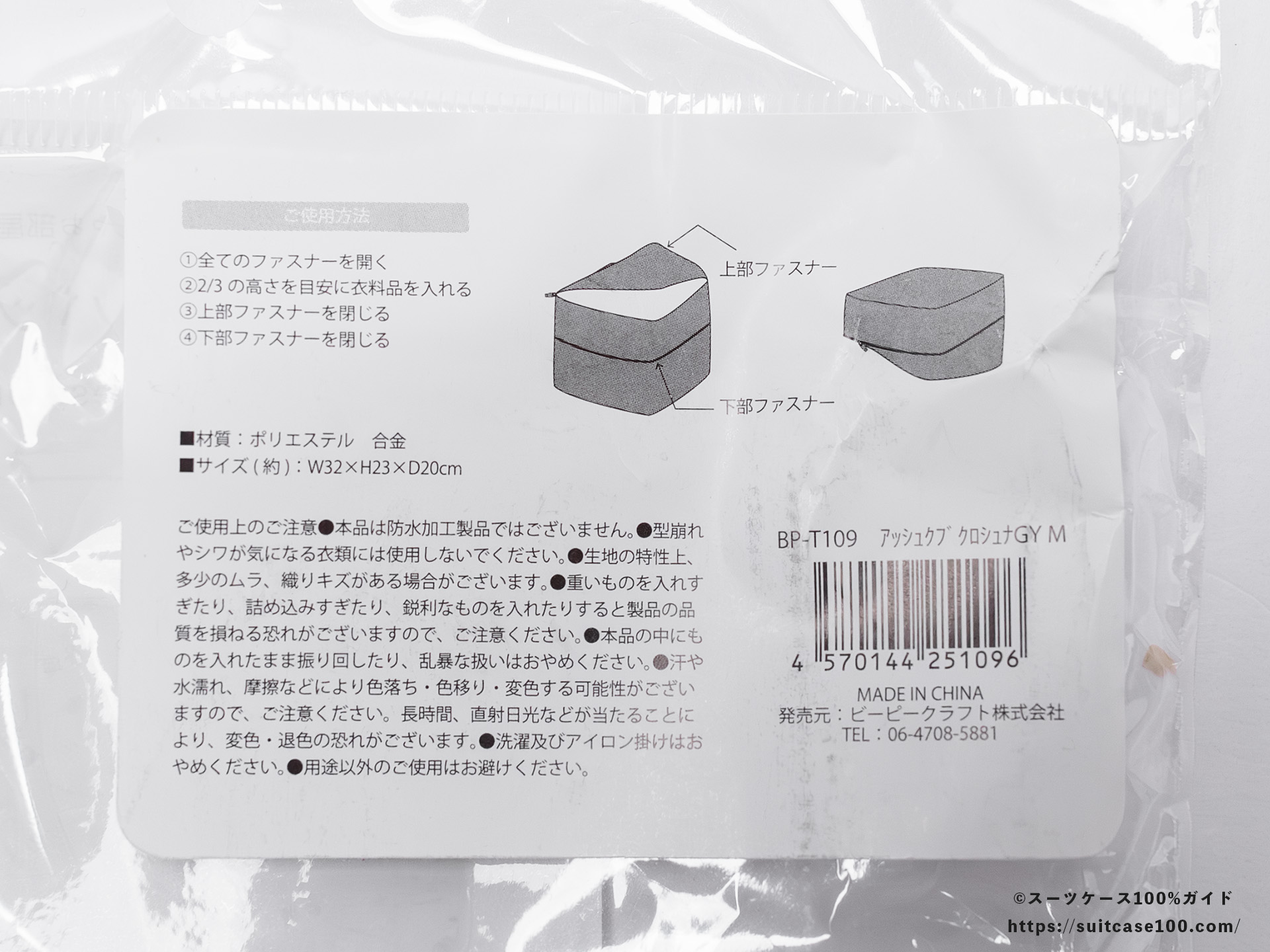 スーツケース用途では圧縮性能が良くないのでおすすめできない。