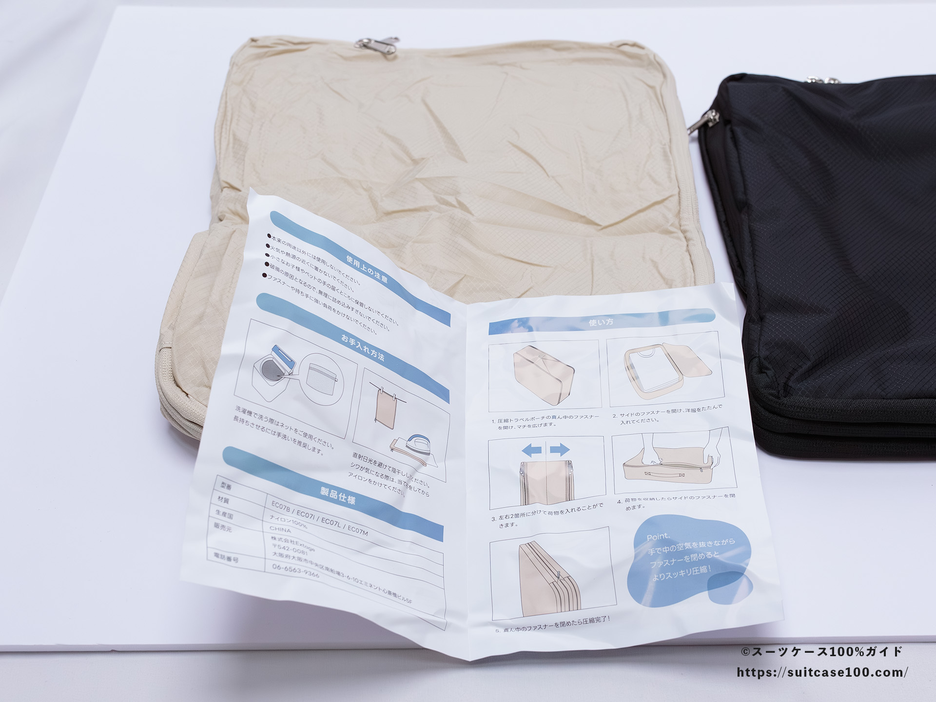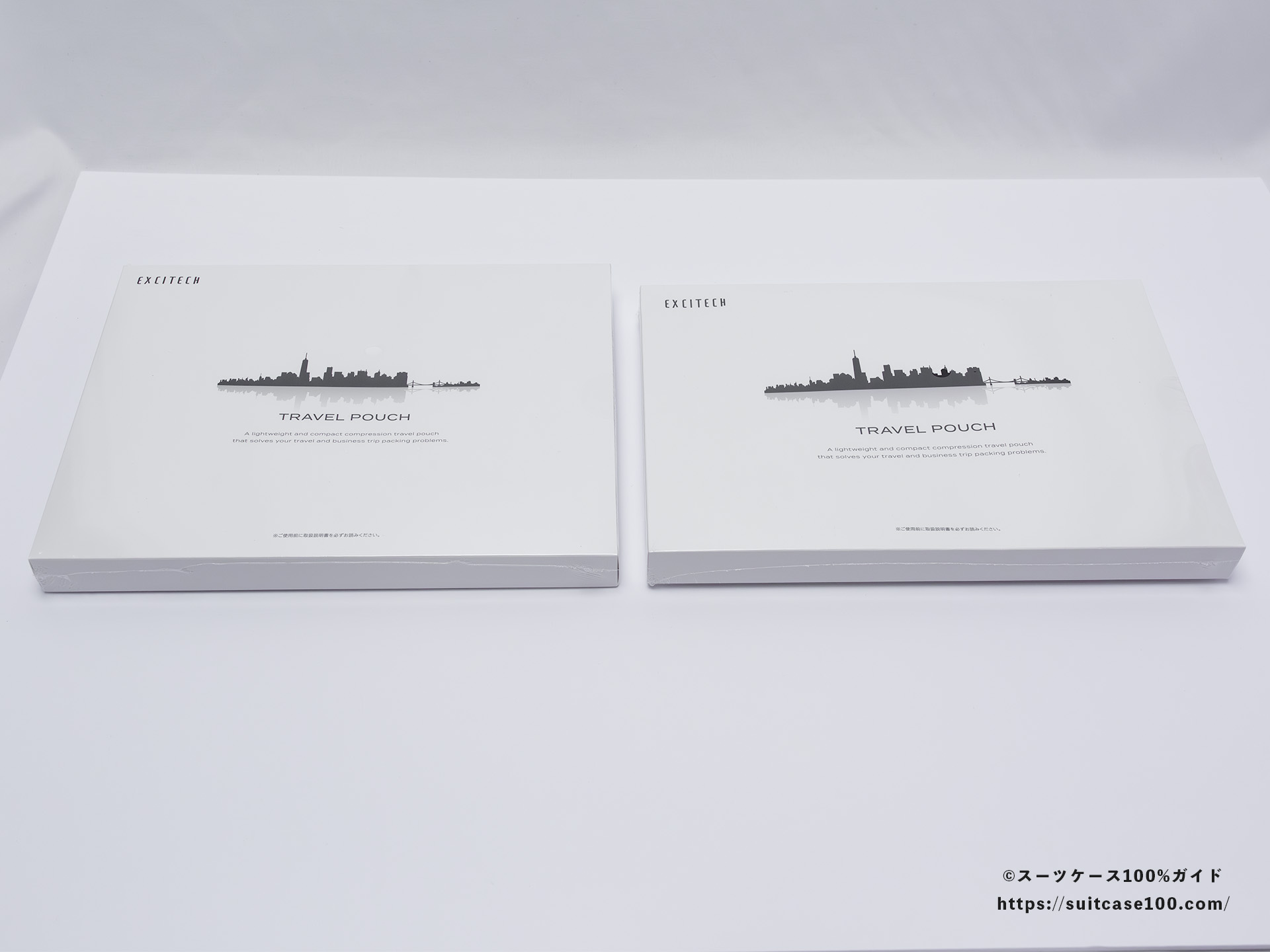 圧縮トラベルポーチが箱に入っているのは珍しい。
