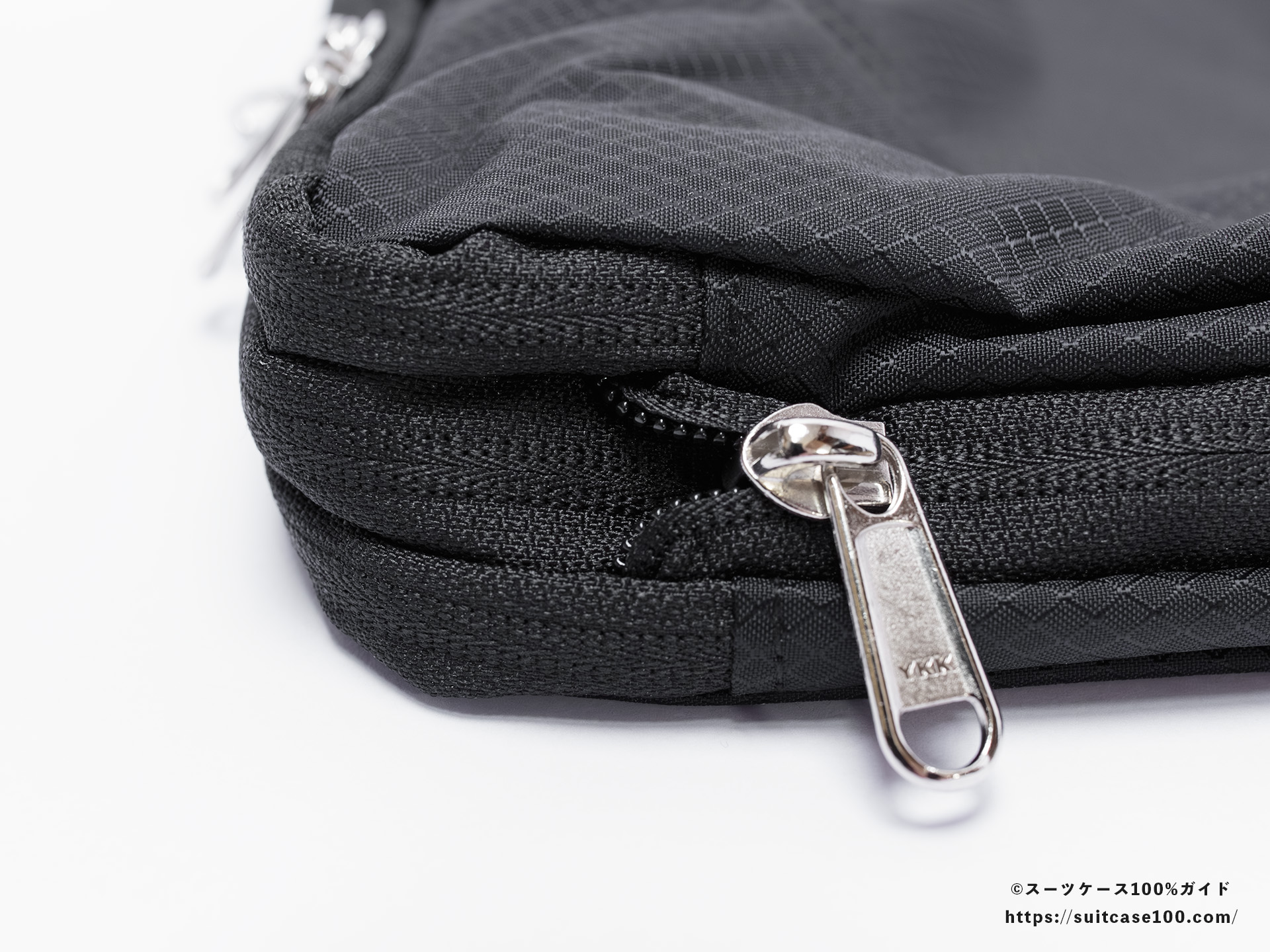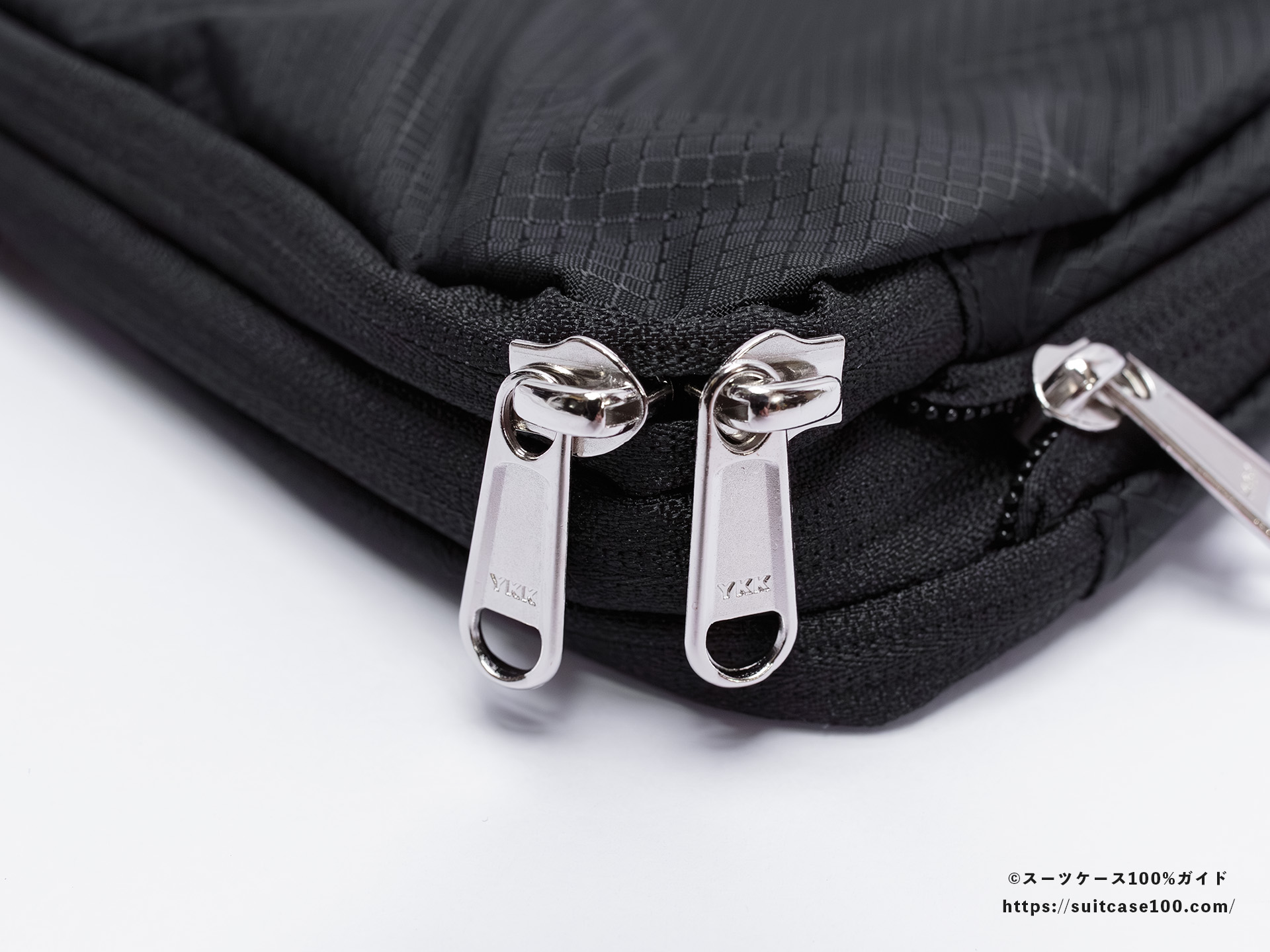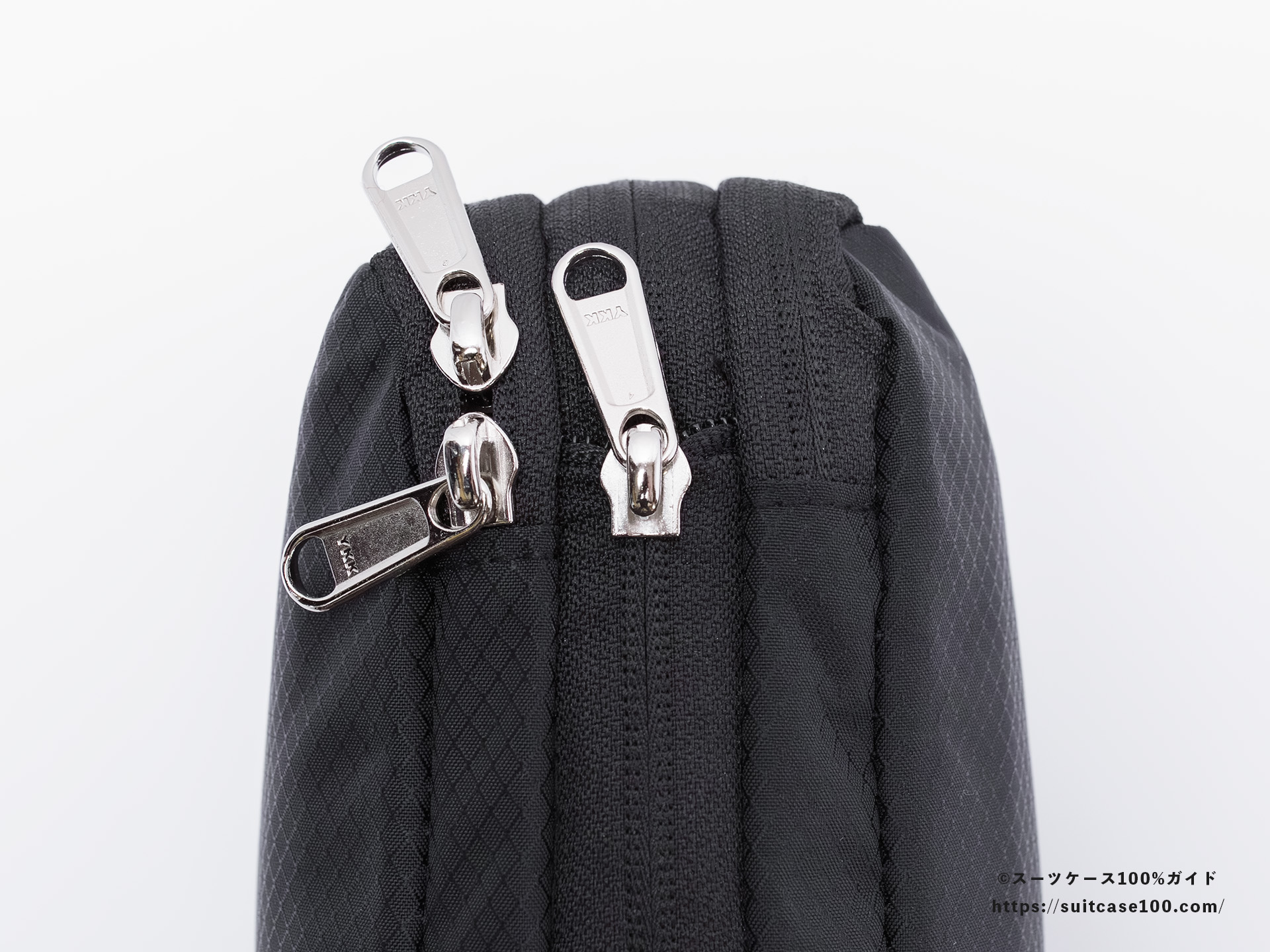 YKKファスナー。引手は普通な汎用デザインですが厚めで少し良い。