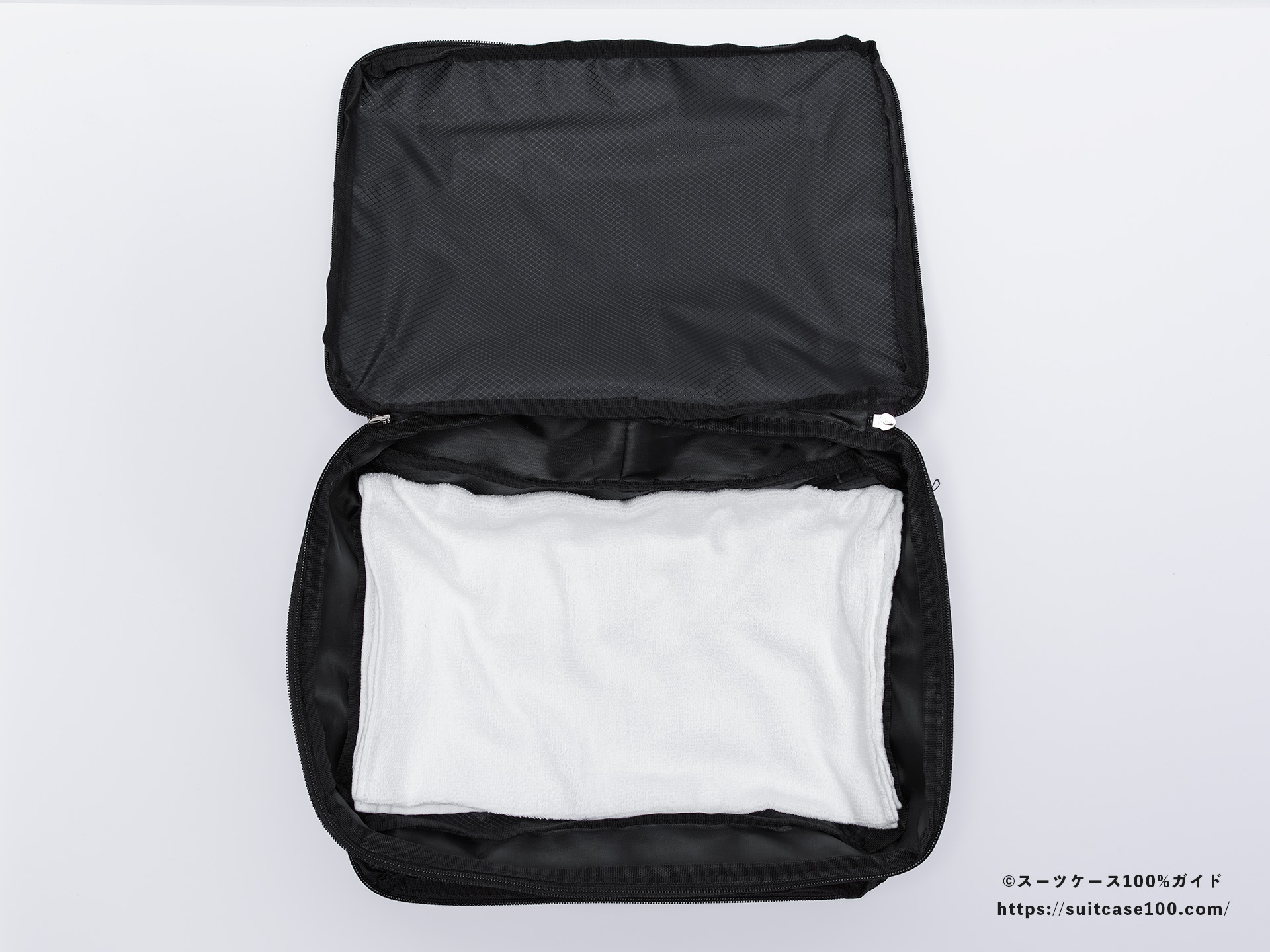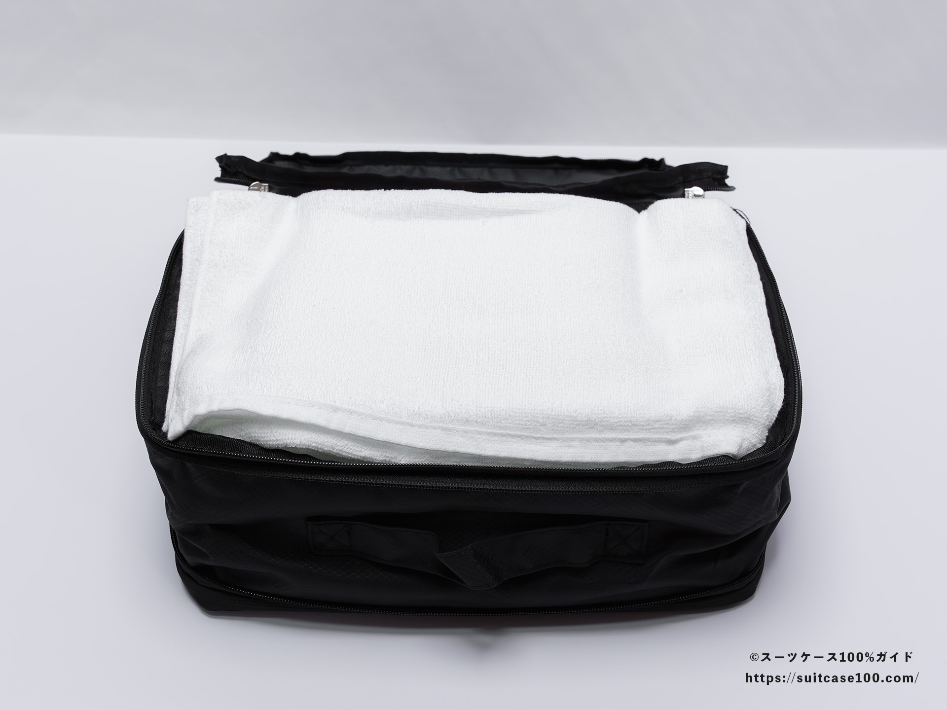 Lサイズに2回折ったフェイスタオルを入れた図です。