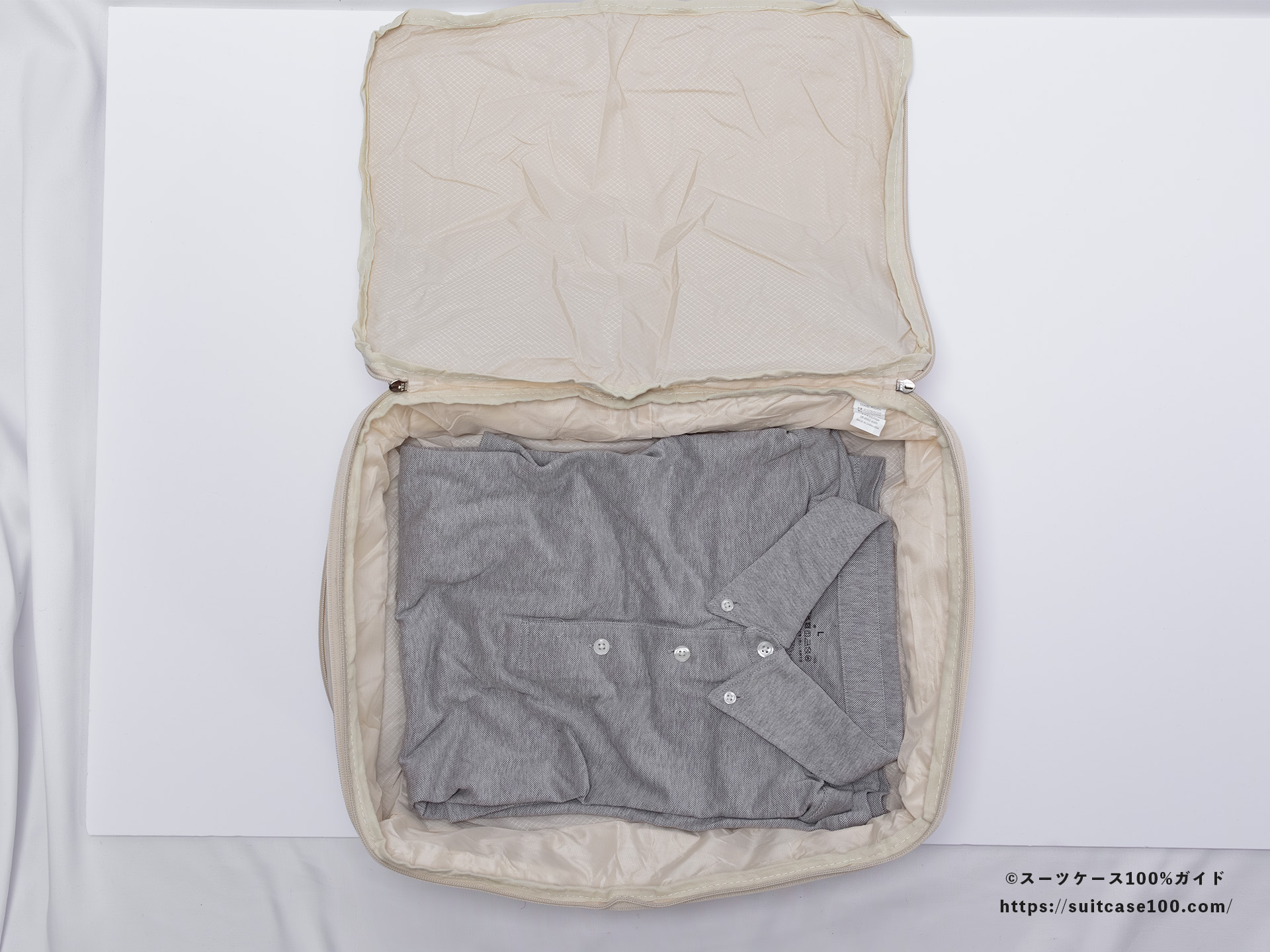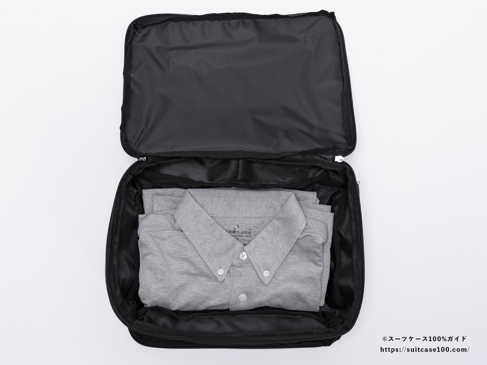 Lサイズのメンズポロシャツは普通の畳み方でぴったり入る。