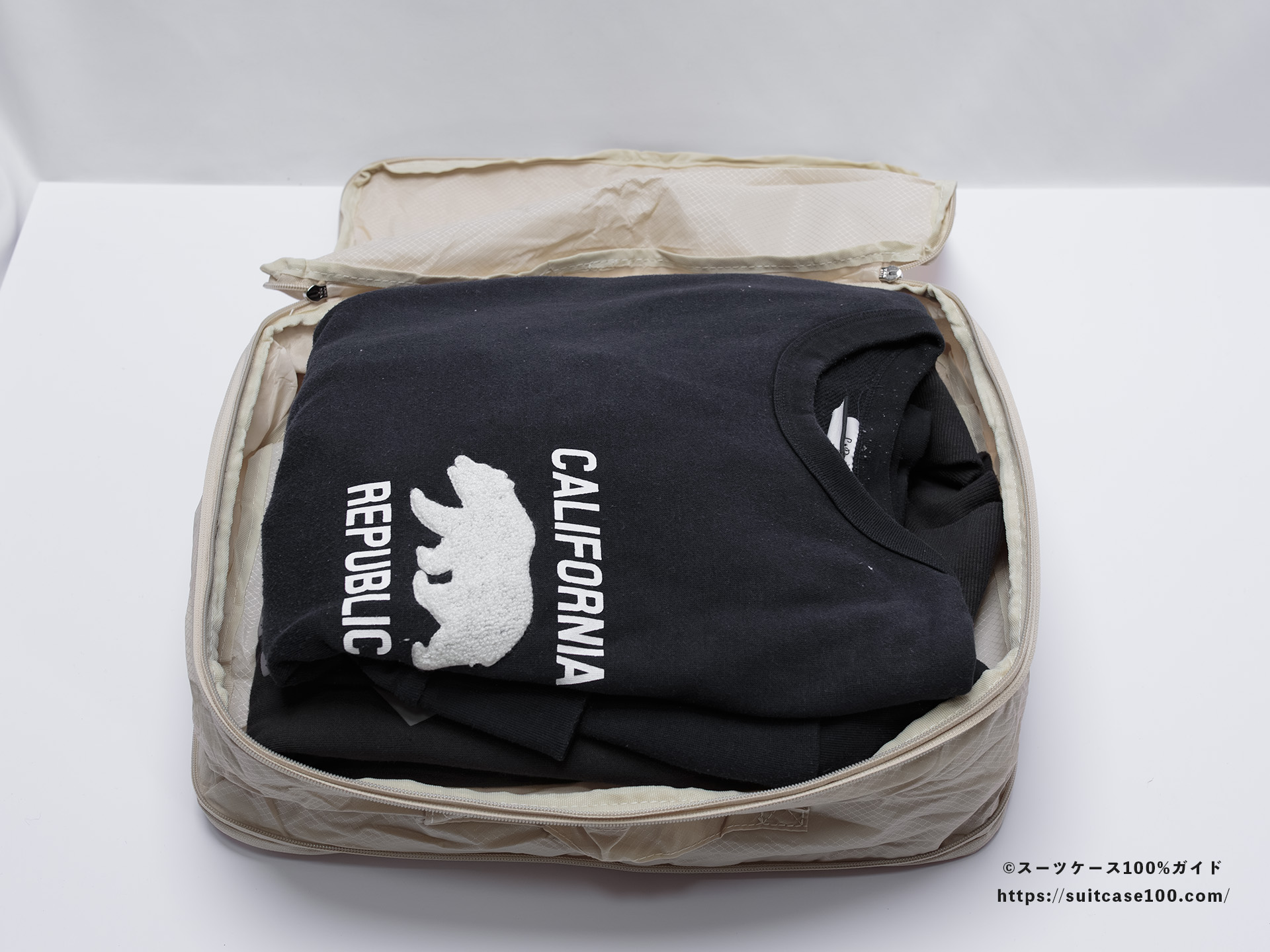 圧縮トラベルポーチとしてはLサイズが一番使いやすいです。