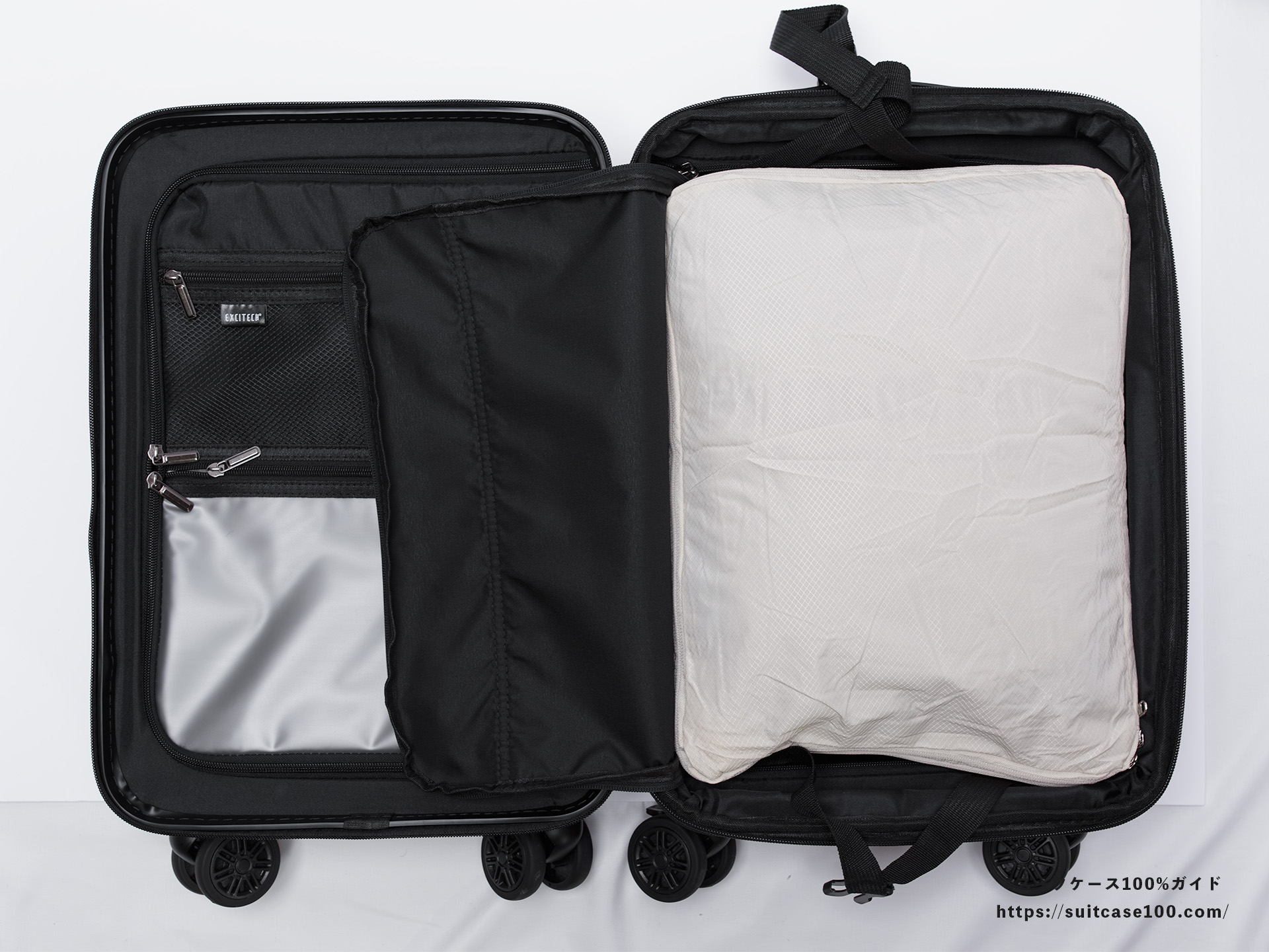 これでは機内持ち込みサイズのスーツケースに横向けに入らない。