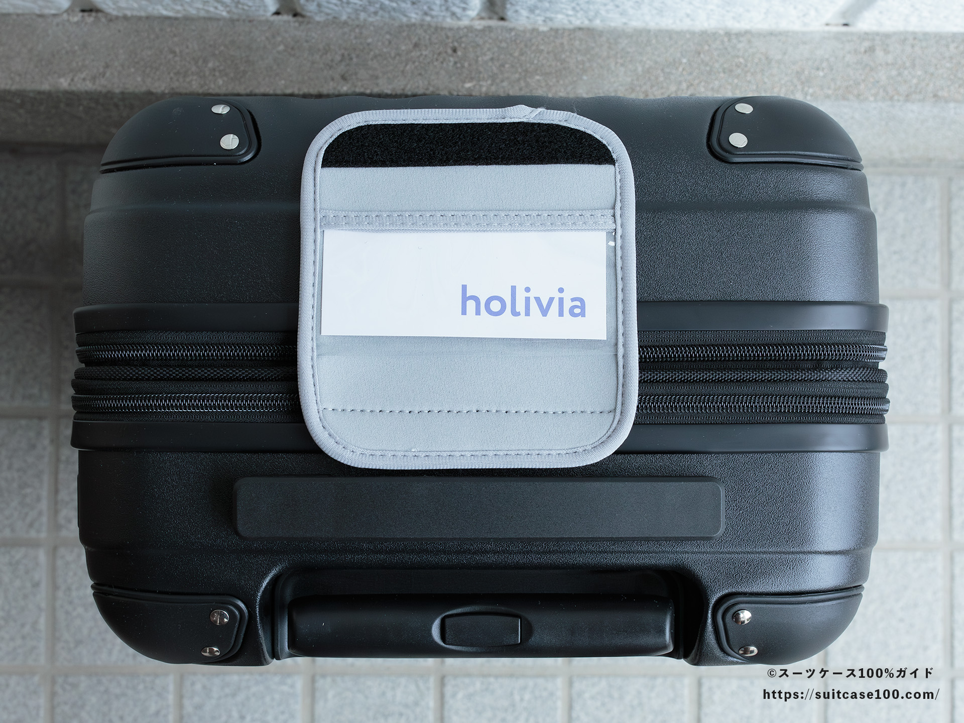 機内持ち込みサイズのスーツケースの上に乗せています。