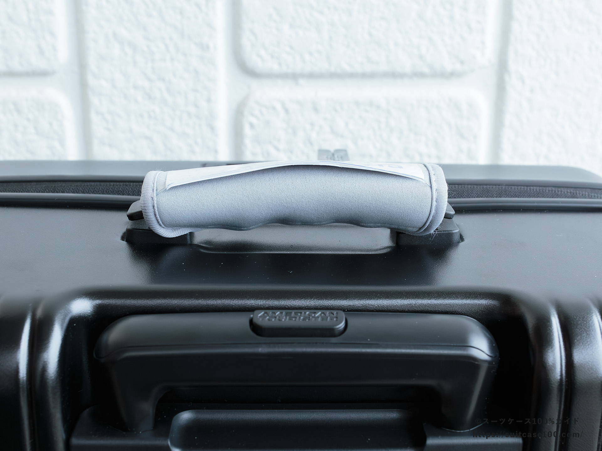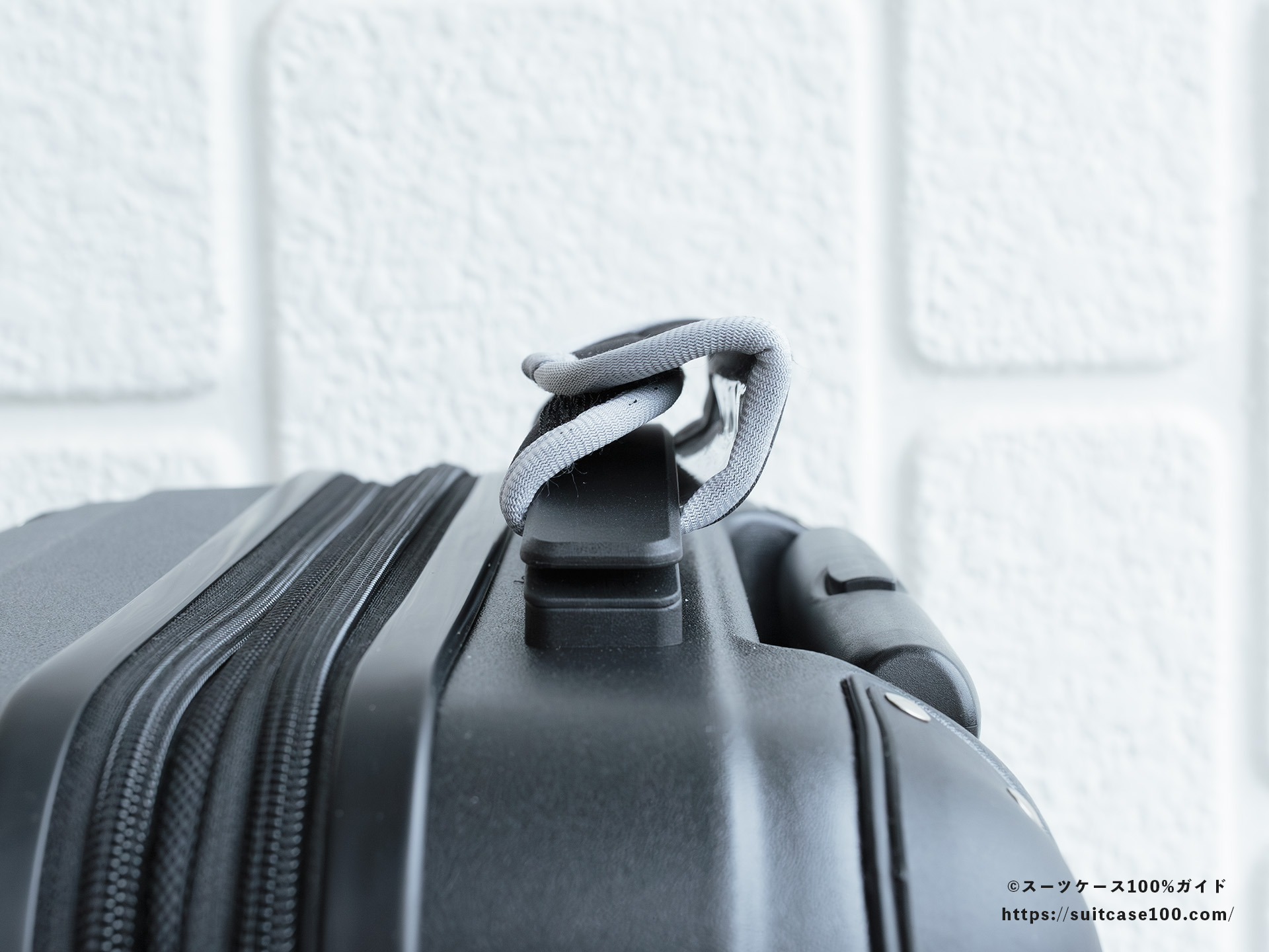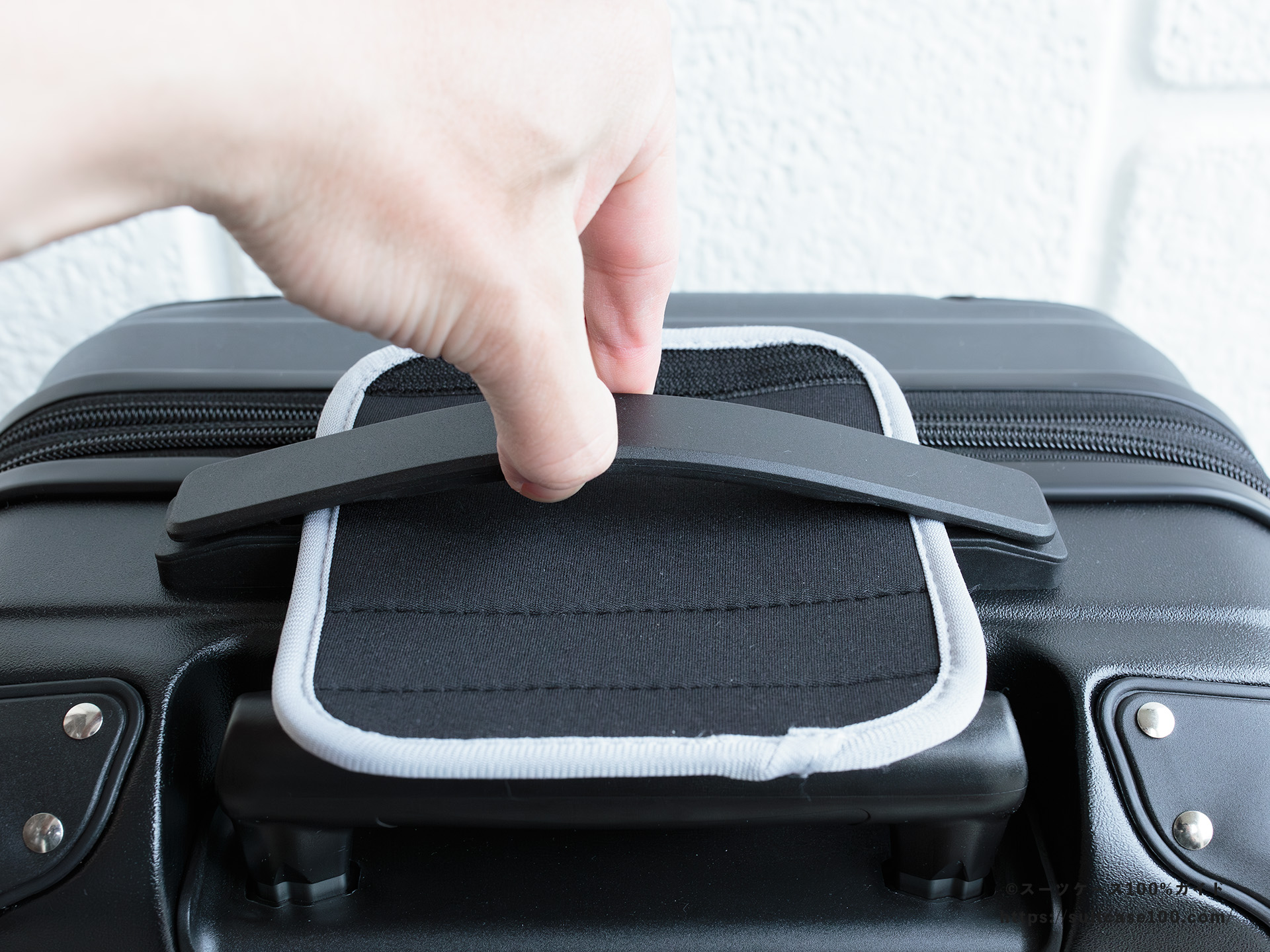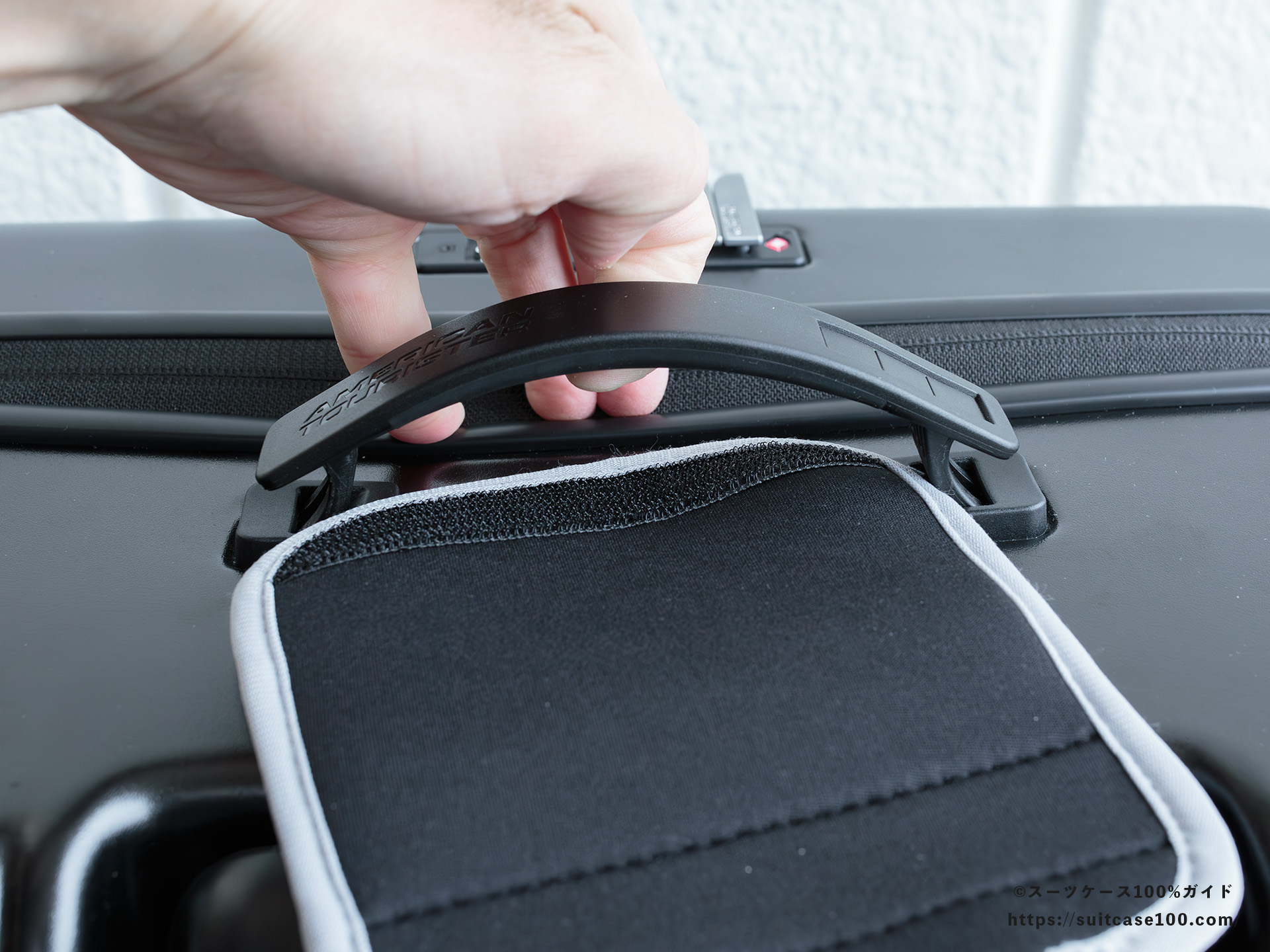 4、トップハンドルが大きく膨れるスーツケースに装着