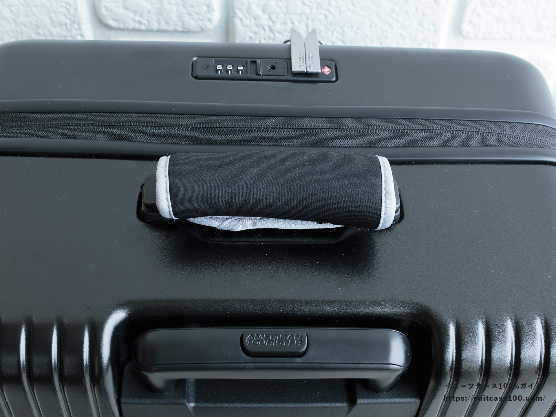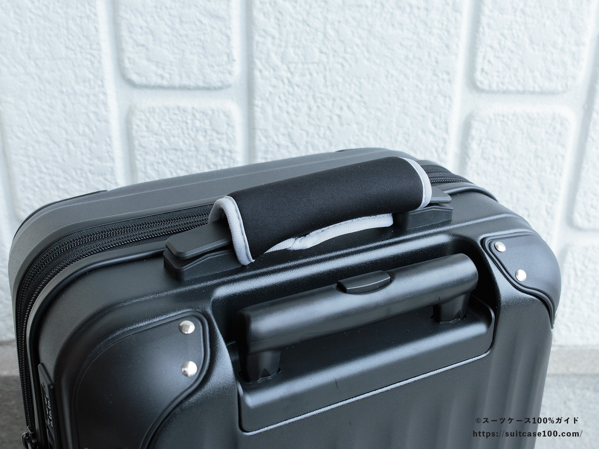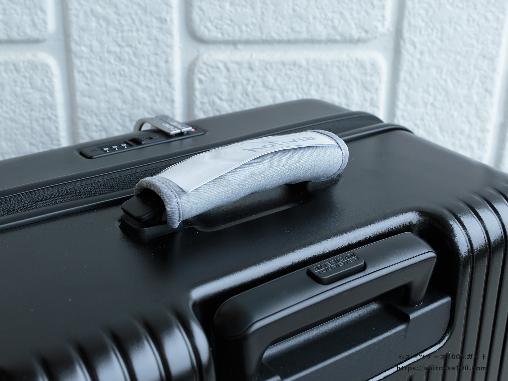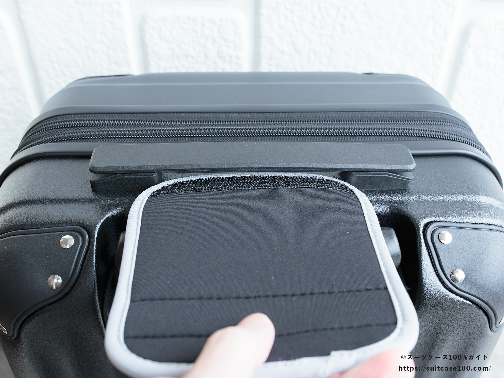 4、トップハンドルが大きく膨れるスーツケースに装着