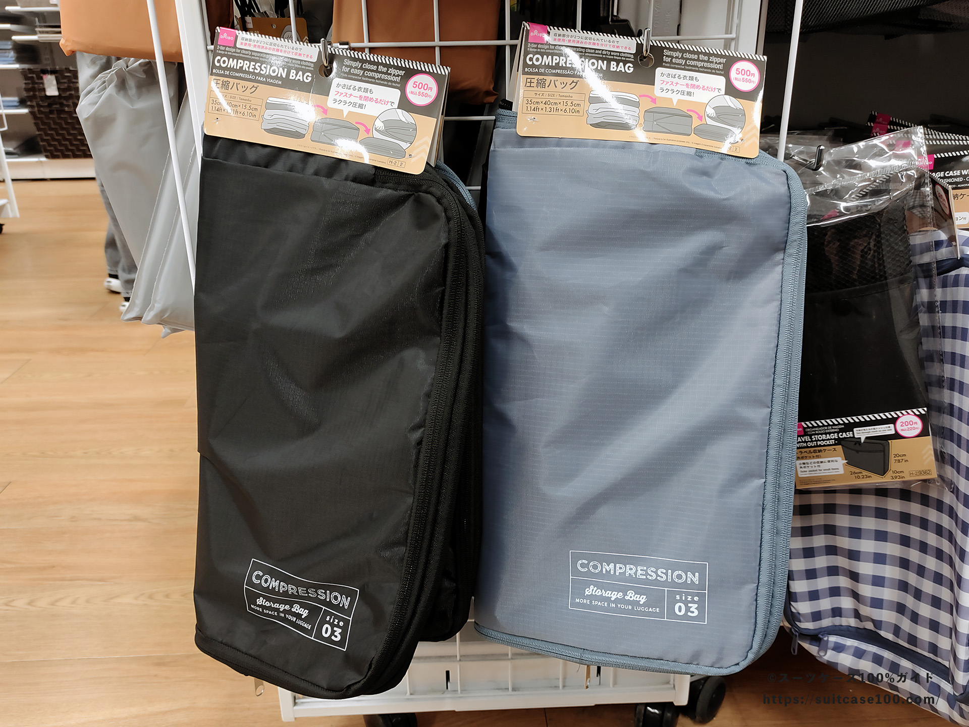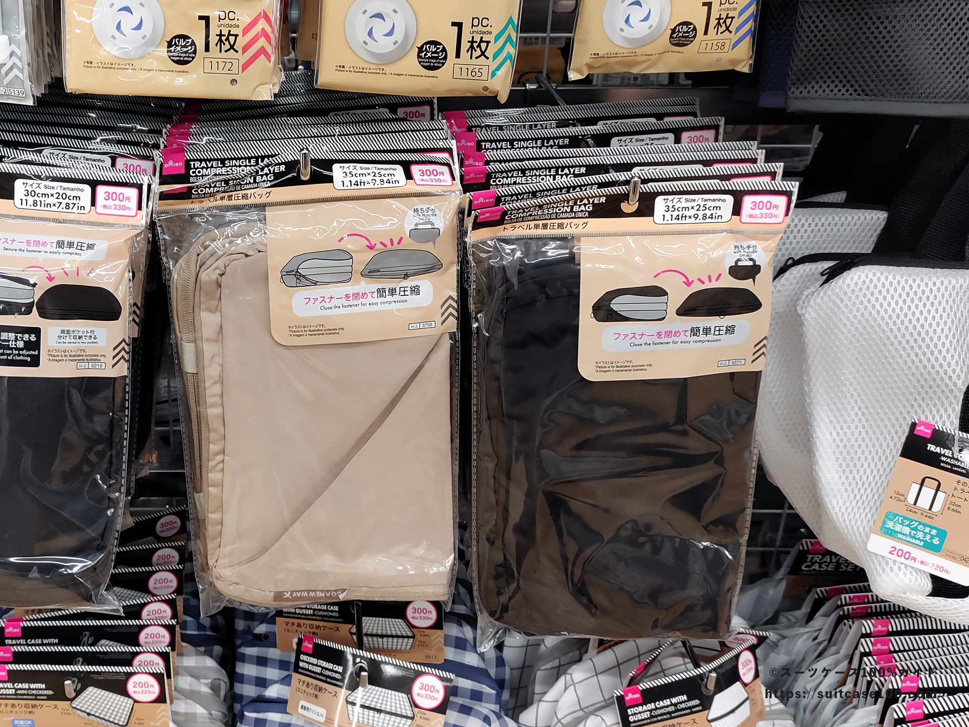 これもあり、やはりダイソーの圧縮バッグはスーツケースには使いにくい。