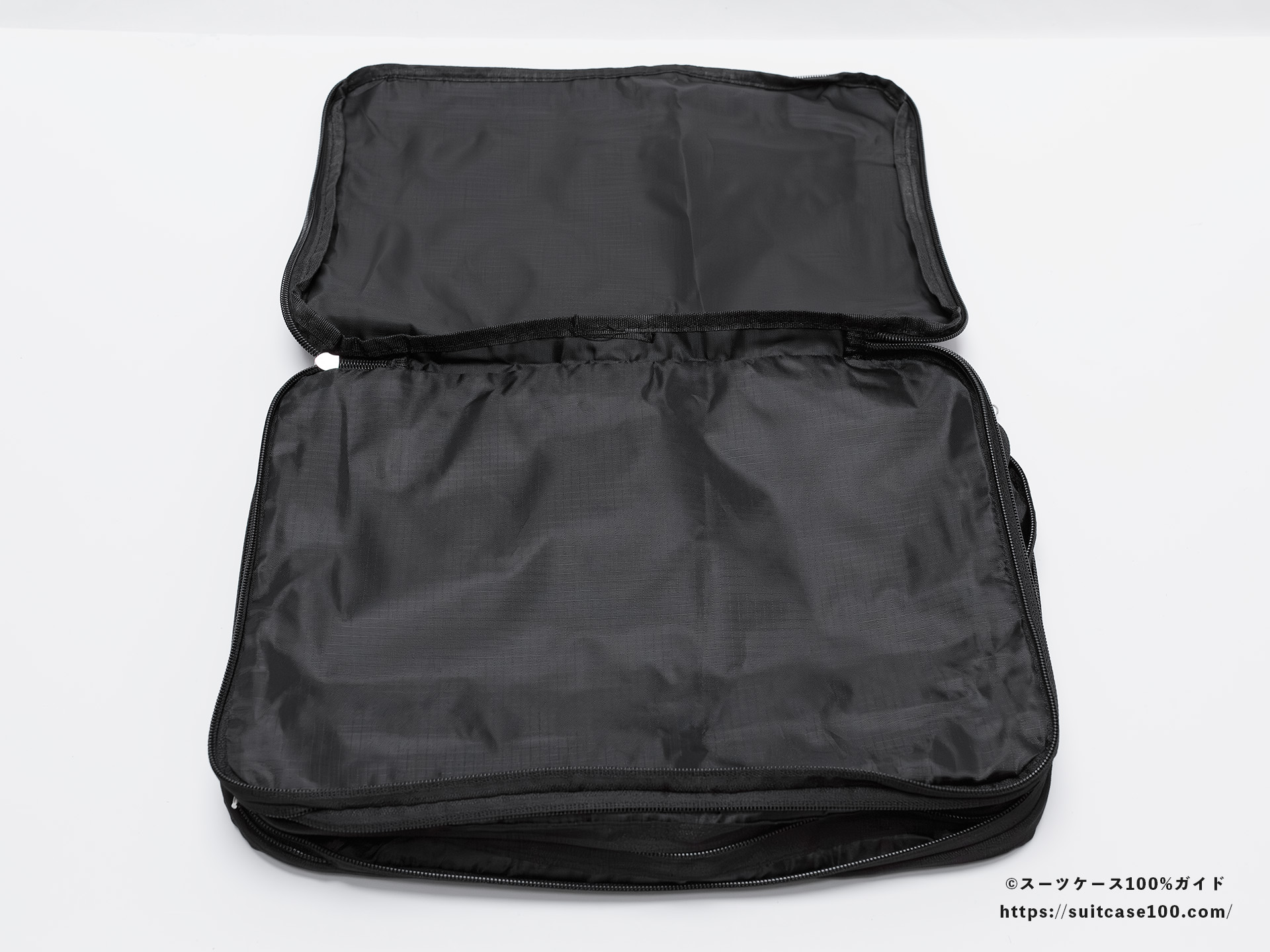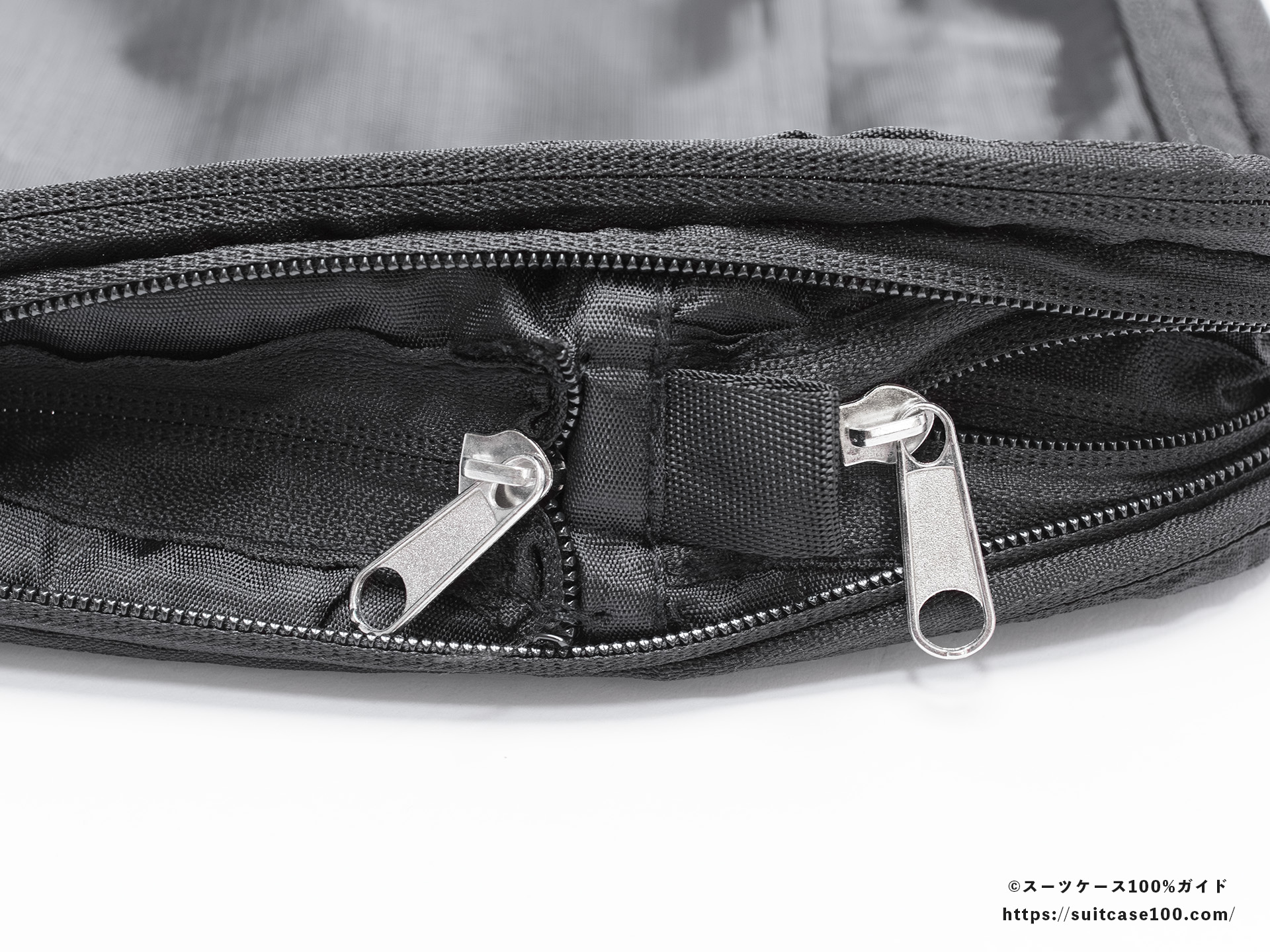 内側の中央のファスナーは1cm程度しか開かないので、ほぼ意味がないと感じる。