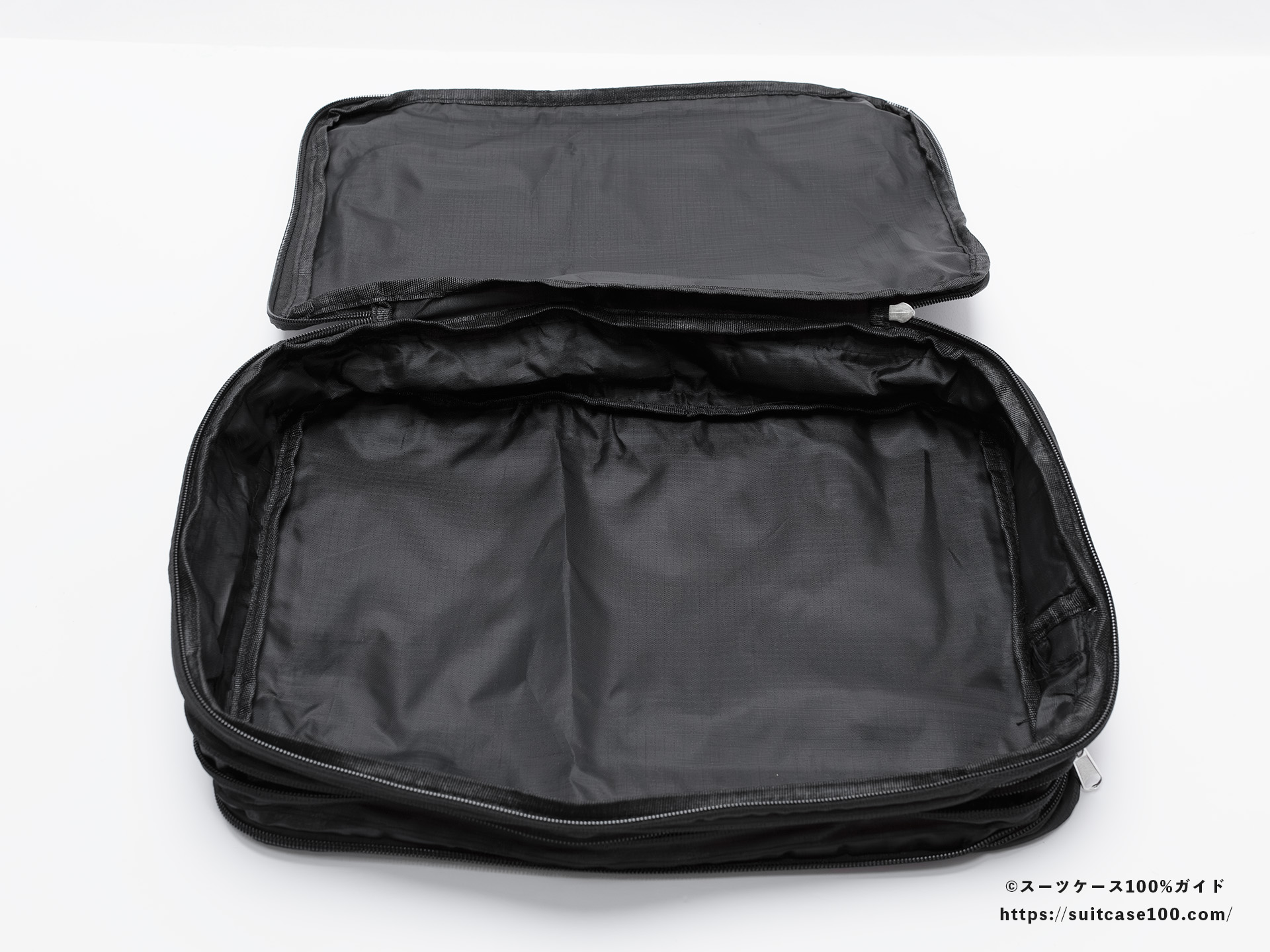 外側の圧縮用ファスナーを開けると、中にも圧縮用ファスナーがある。
