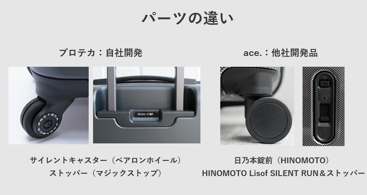 エースとプロテカの違いの話(スーツケースの仕様など)
