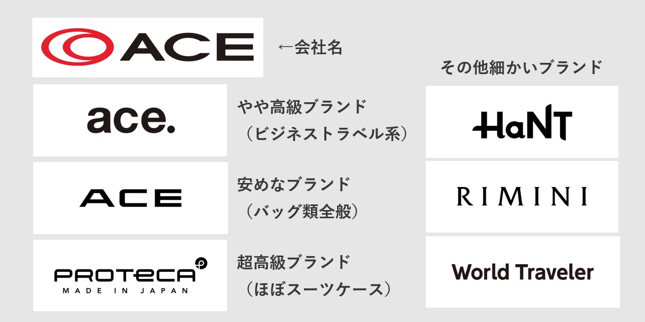 「ace.」は高級シリーズ、「ACE」は廉価シリーズと覚えたらOK。