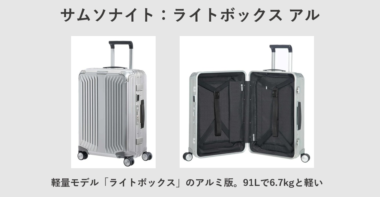 サムソナイトの高級な軽量モデル「ライトボックス」のアルミ合金版。