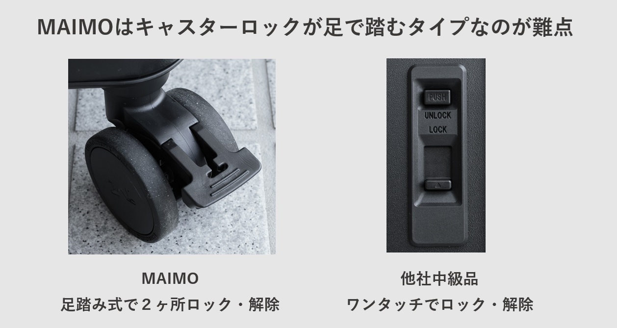 このキャスターを交換できる仕様というのはMAIMOだけ。