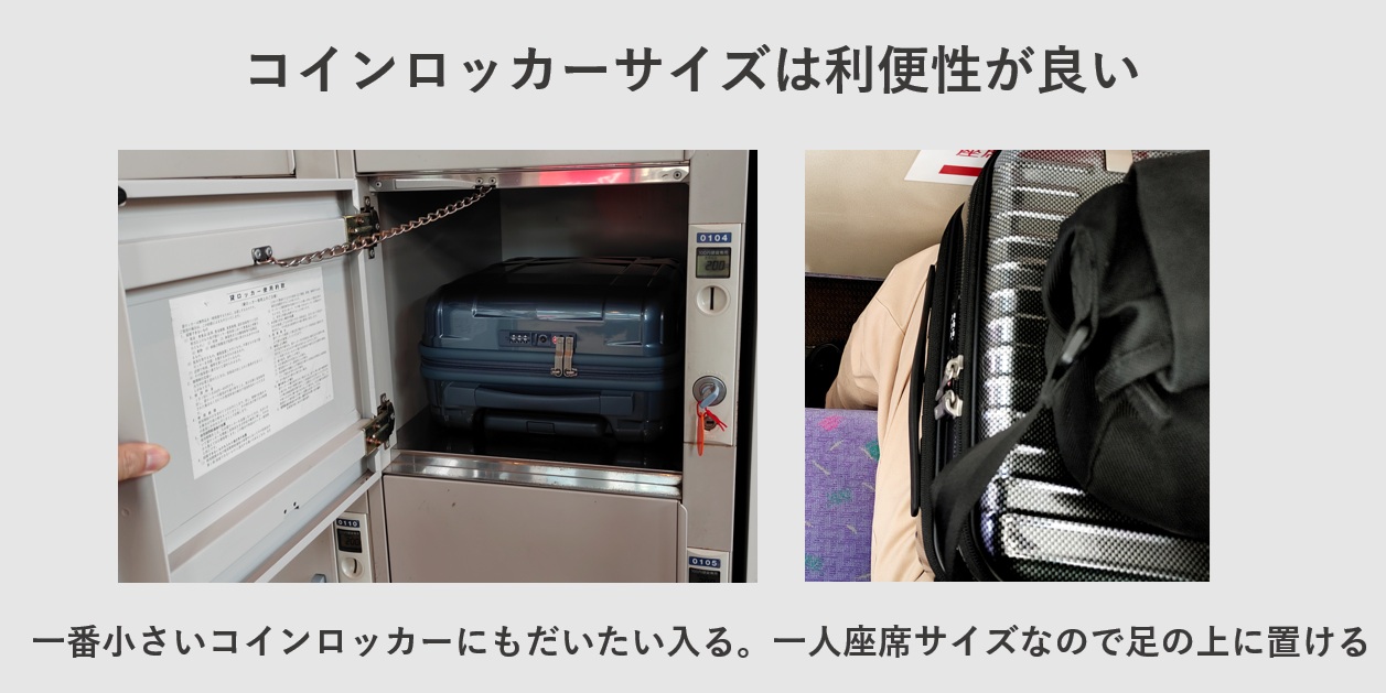 コインロッカーサイズなら小さいコインロッカーに入れられる。