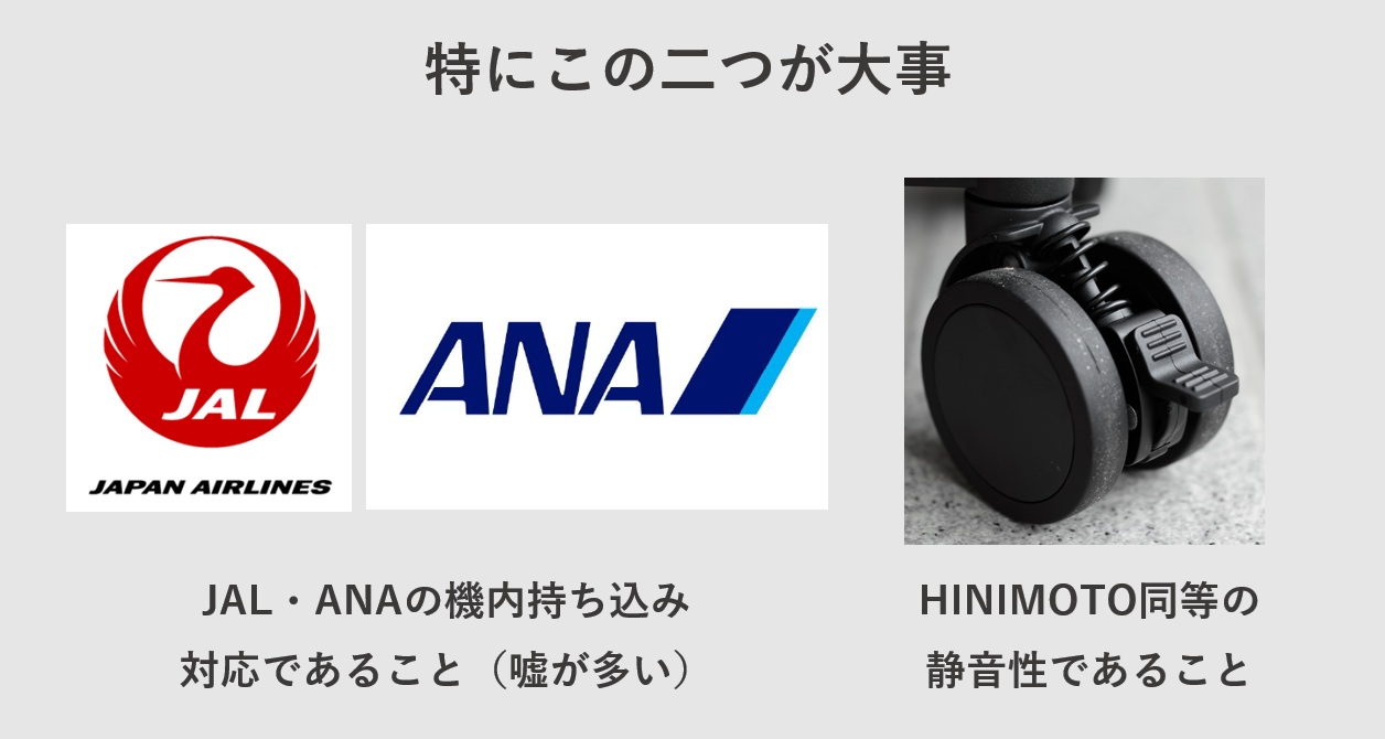 JAL・ANAの機内持ち込みサイズを選ぶのは絶対。