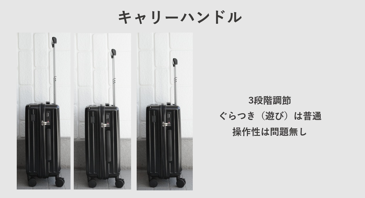 キャリーハンドルはぐらつきはほぼ気にならず持ち心地も良いのですが、