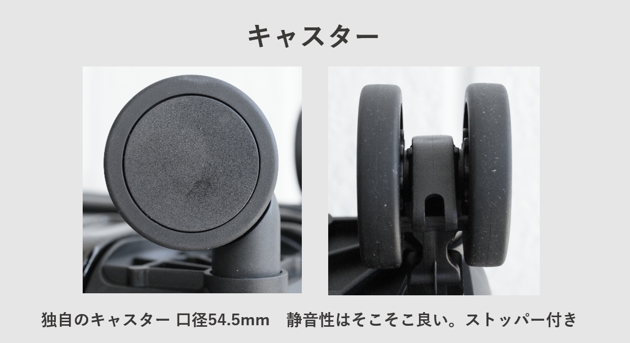 キャスターの静音性が良く、ちゃんと使えるストッパー付き。