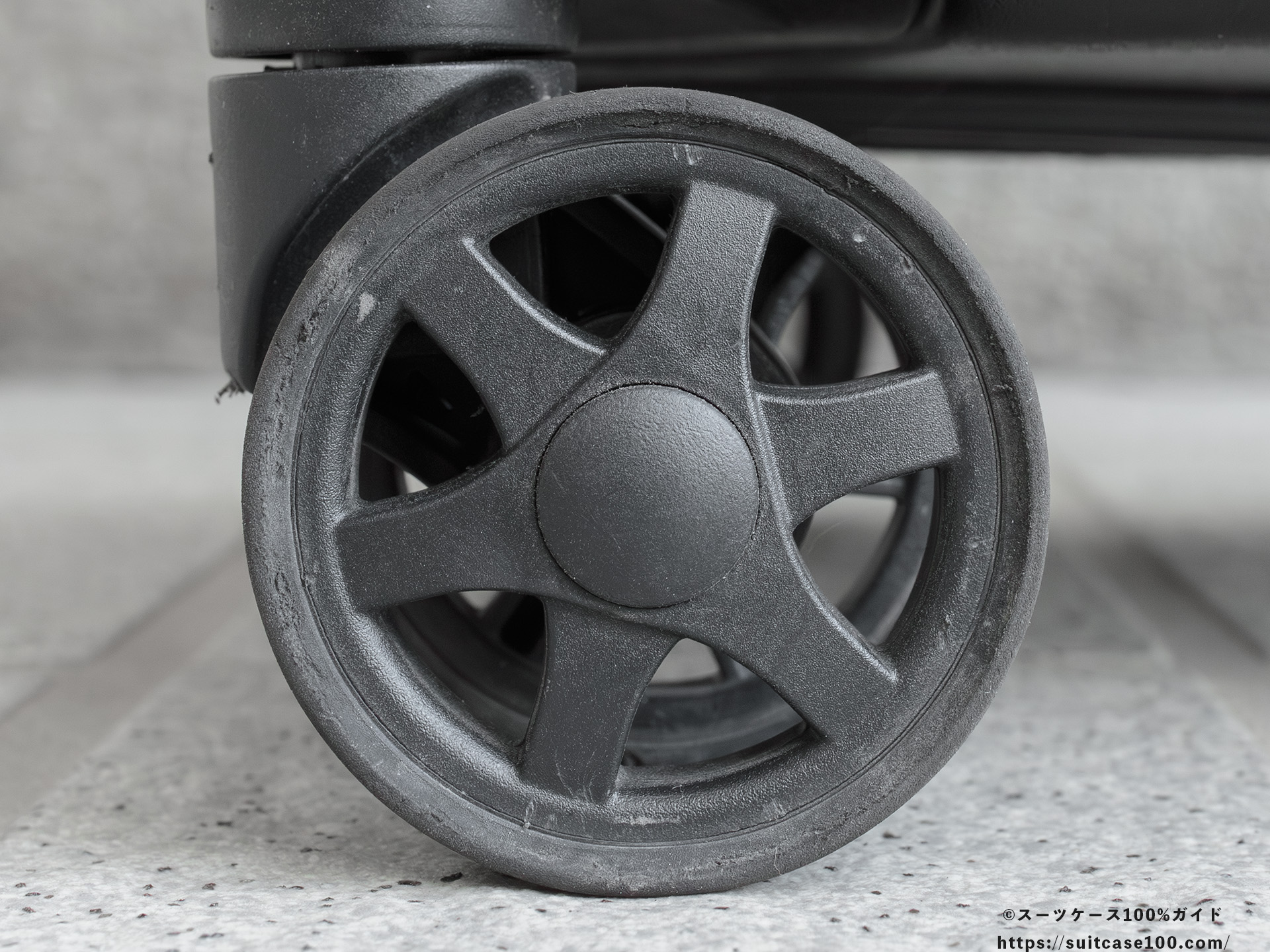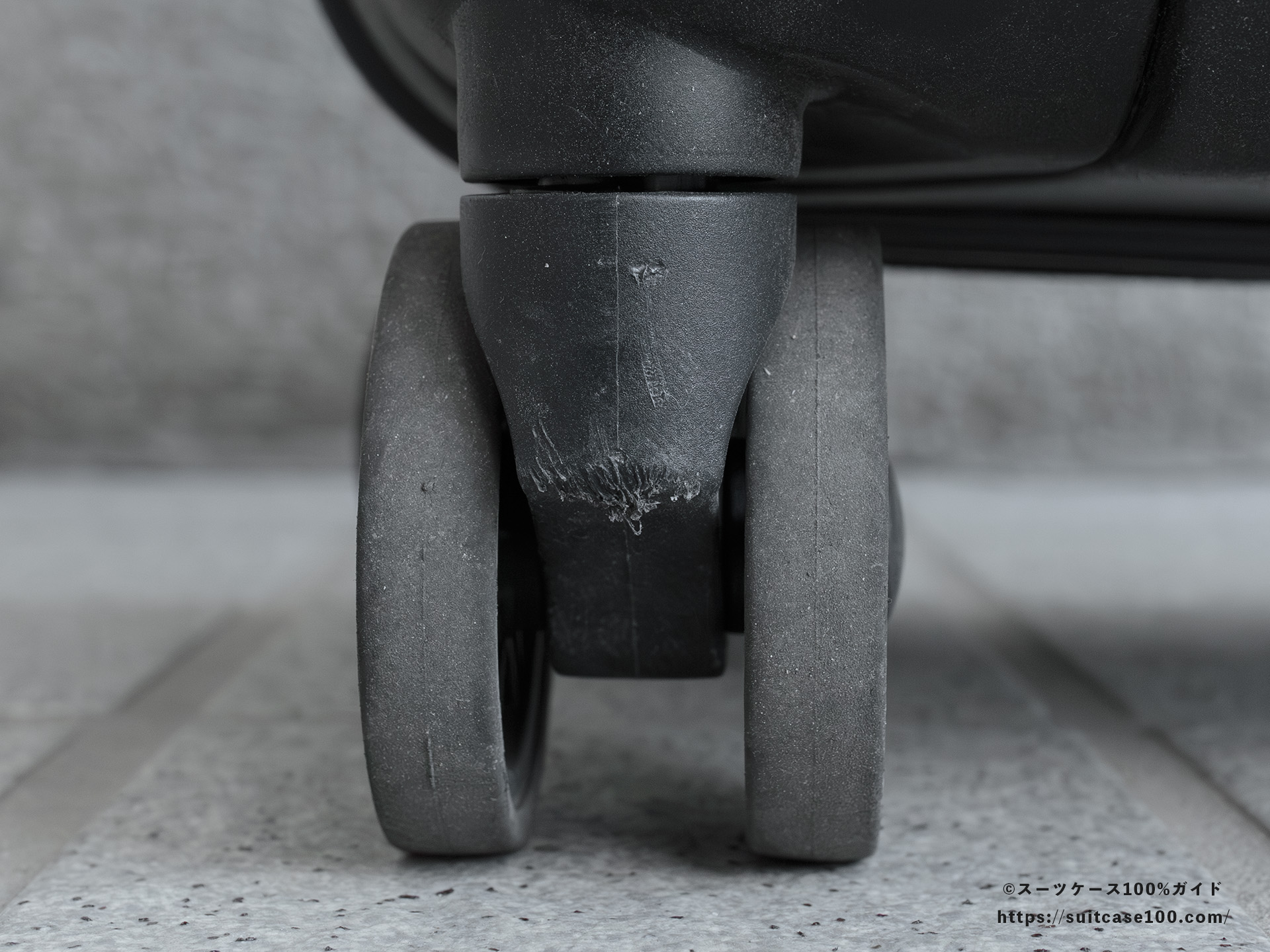 キャスターの摩耗も大きめなので、他のスーツケースよりは長持ちしないと思う。