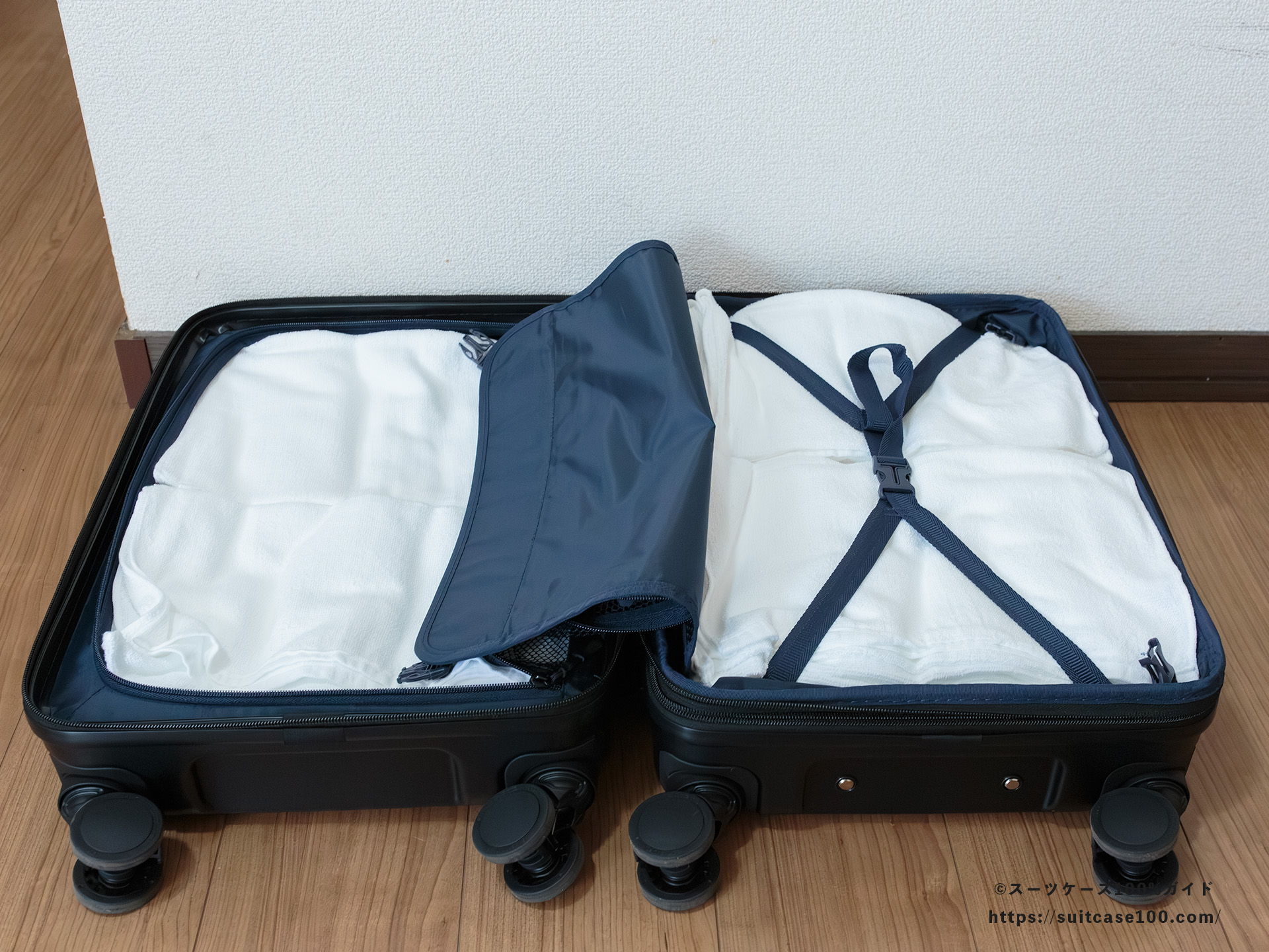 | 内装 | △ | 両面仕切り。ポケットが少なく小さい |