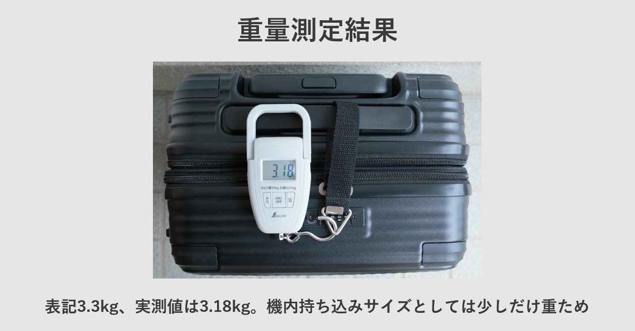 機内持ち込みサイズのスタンダードタイプとしてはやや重たい方です。
