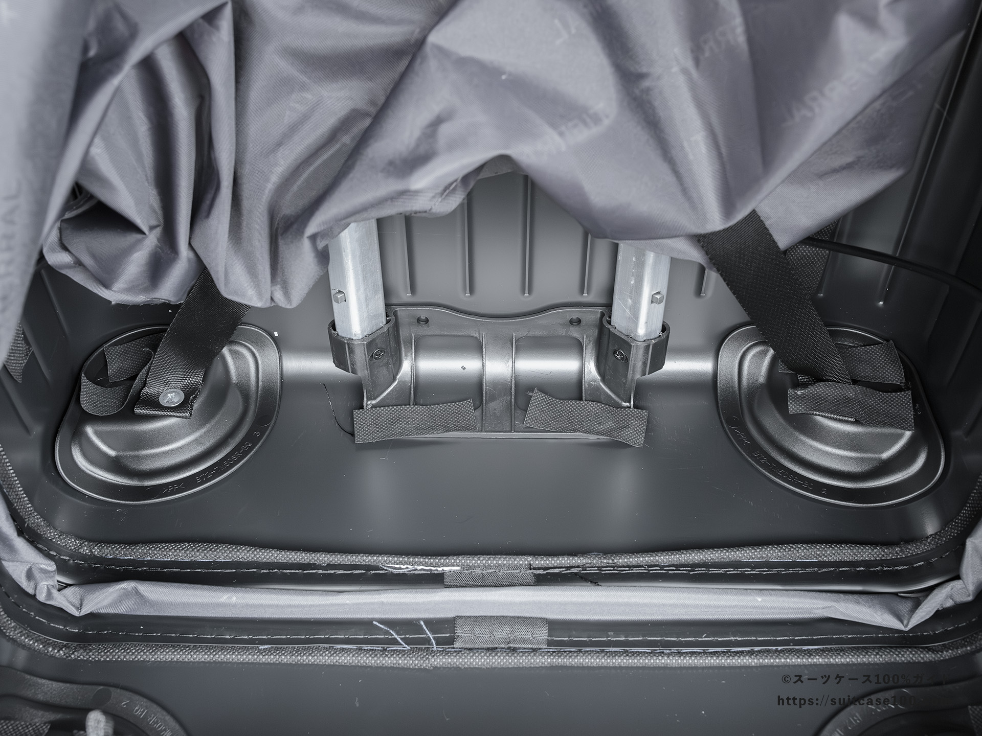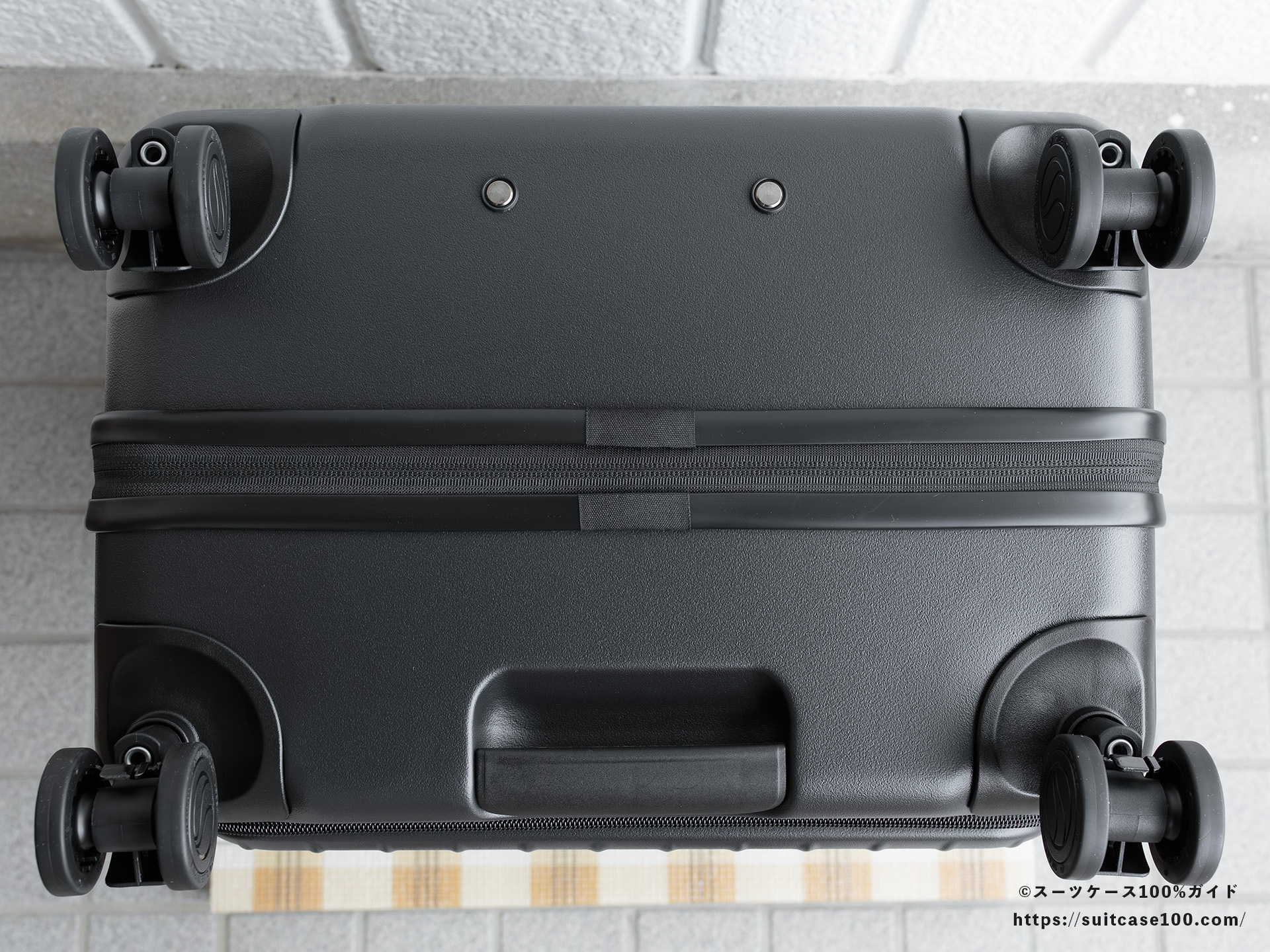 底面はキャリーバーとストッパーがあるので凸凹です。