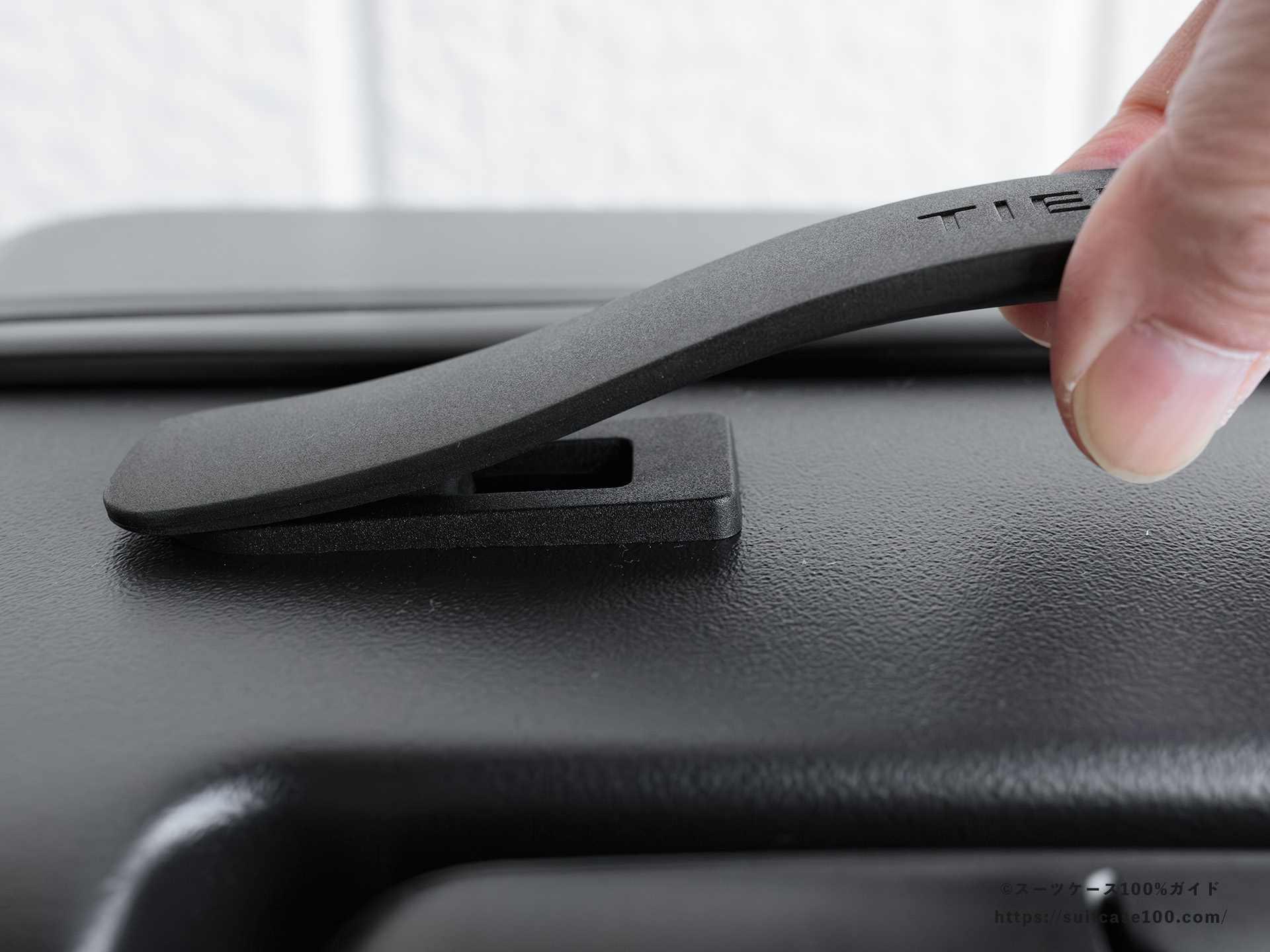 シンプルな樹脂の板のトップハンドル。