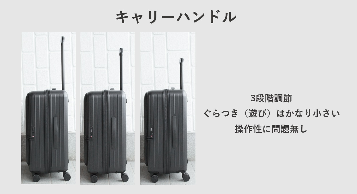 - ✔キャリーハンドルのぐらつきがほぼ無い