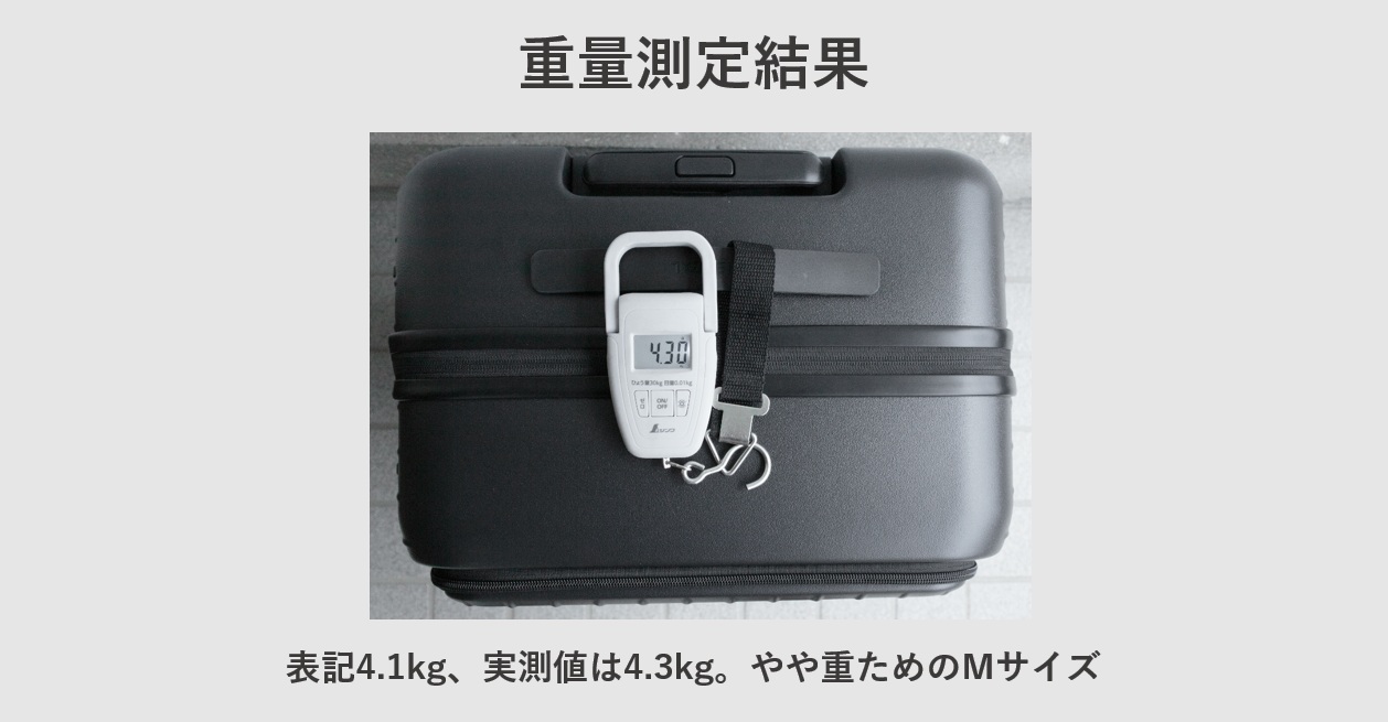 商品ページ記載は4.1kg、実測値4.3kgと重たかった。