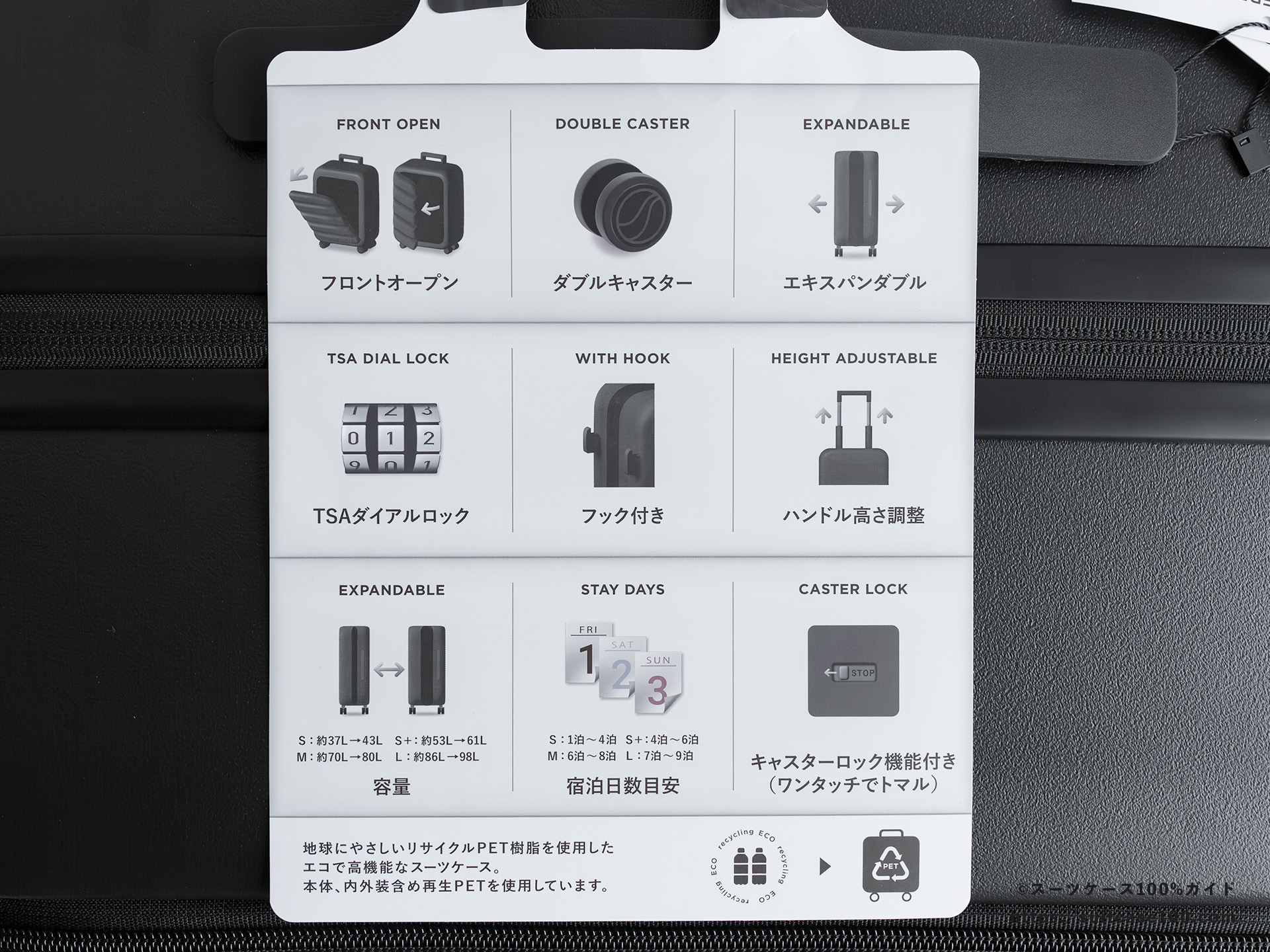 | TSAロック | 〇 | ダイヤル式。007型 |