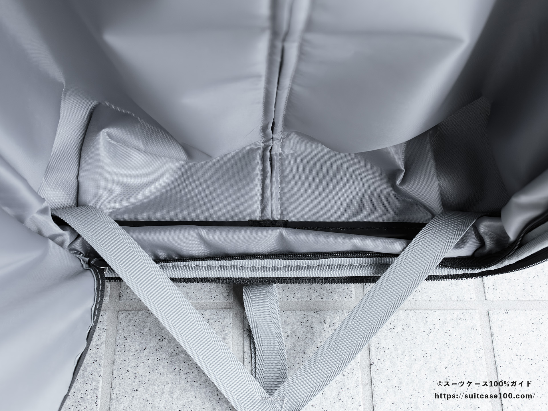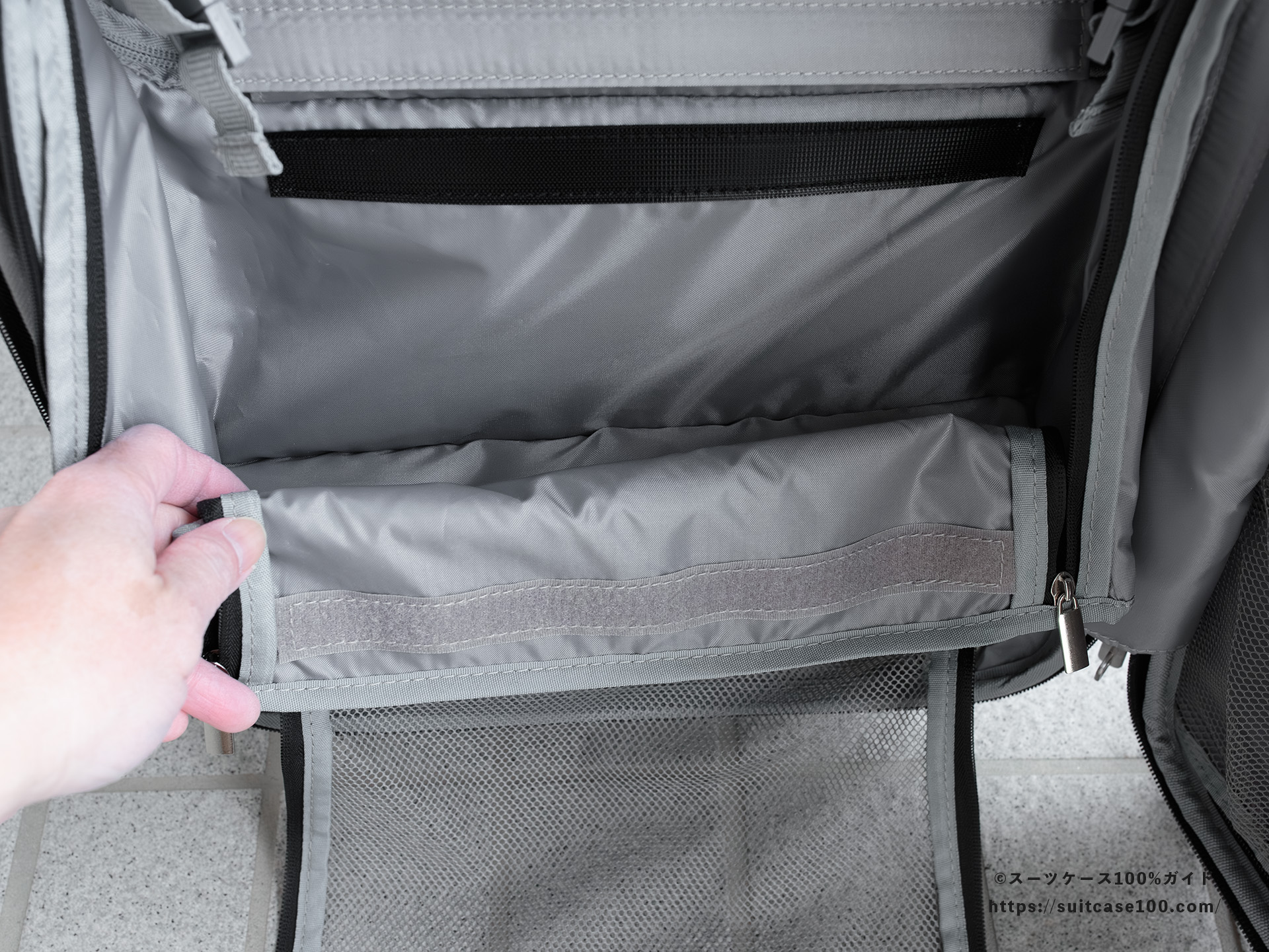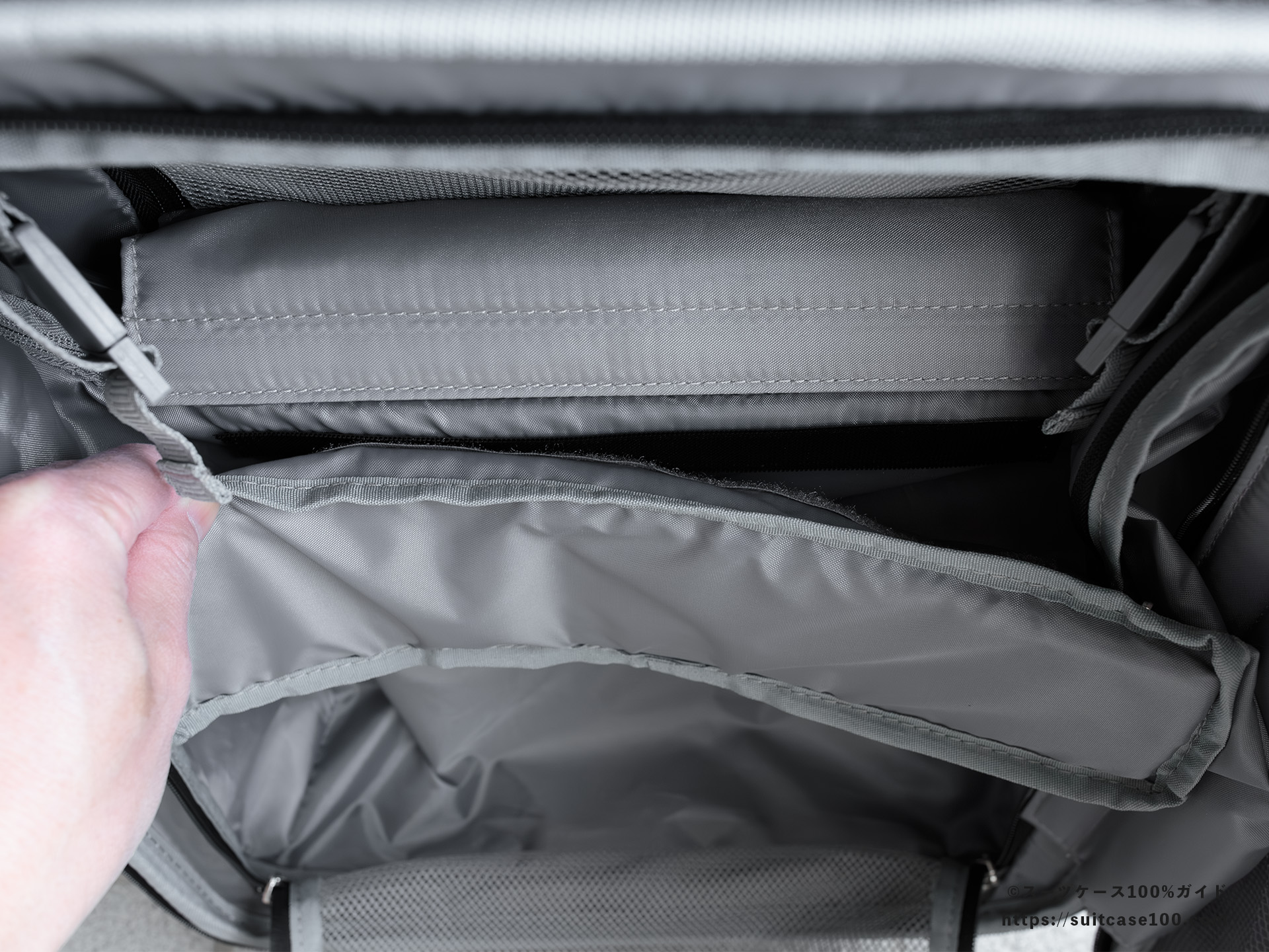 容量拡張機能のファスナー部の歪みがやや目立つのが残念。