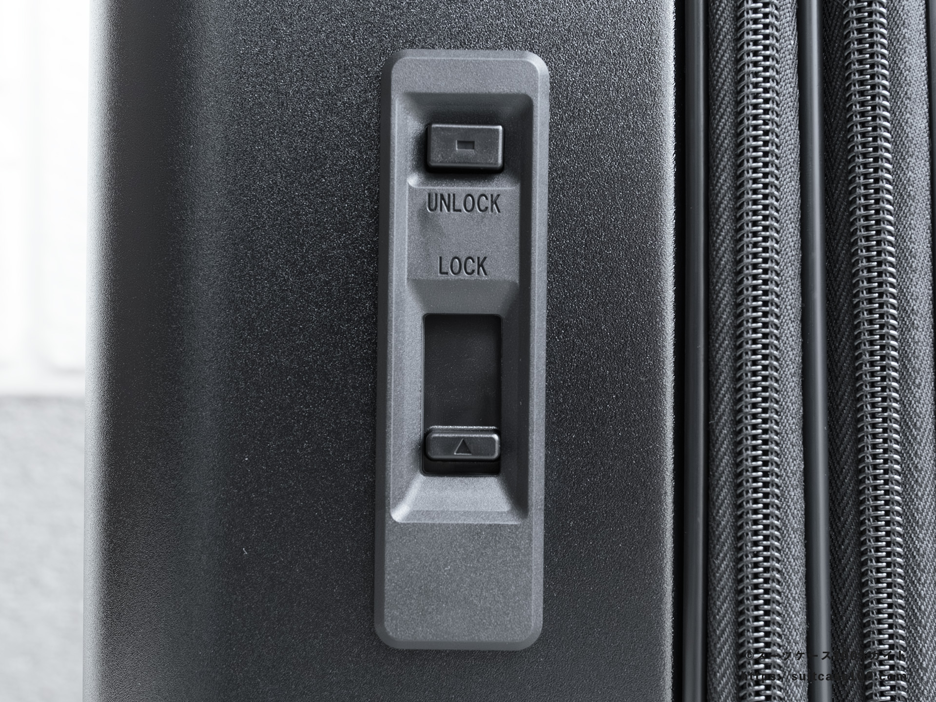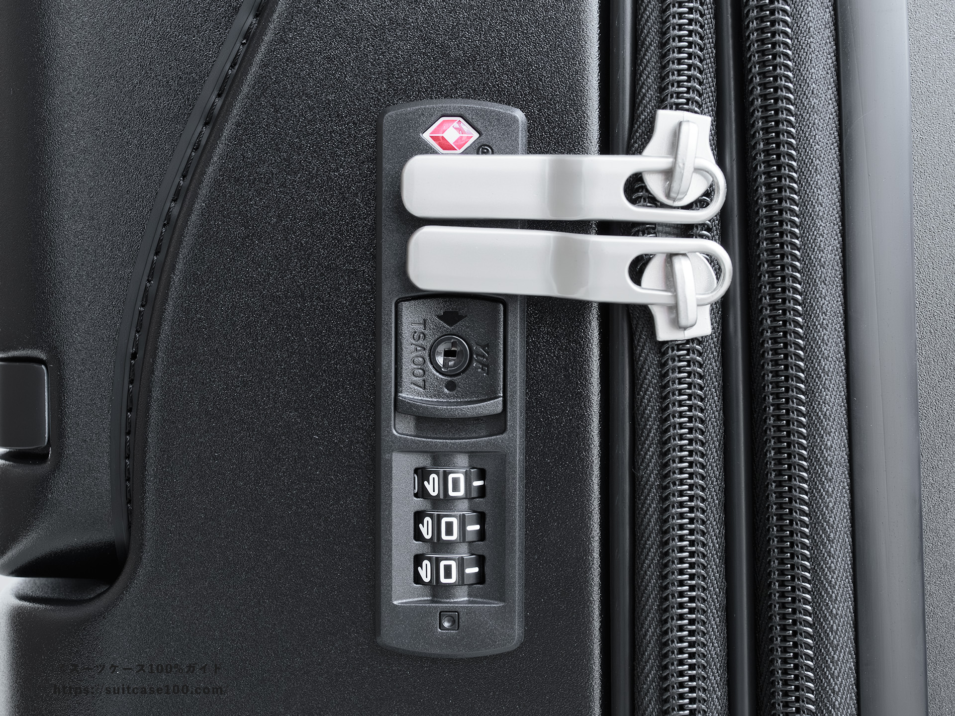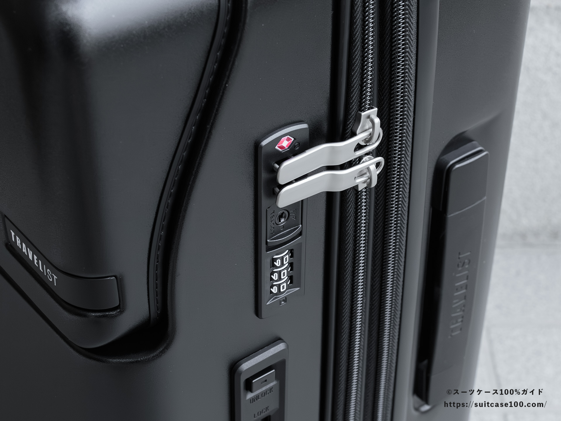 メイン収納側のTSAロックの説明。