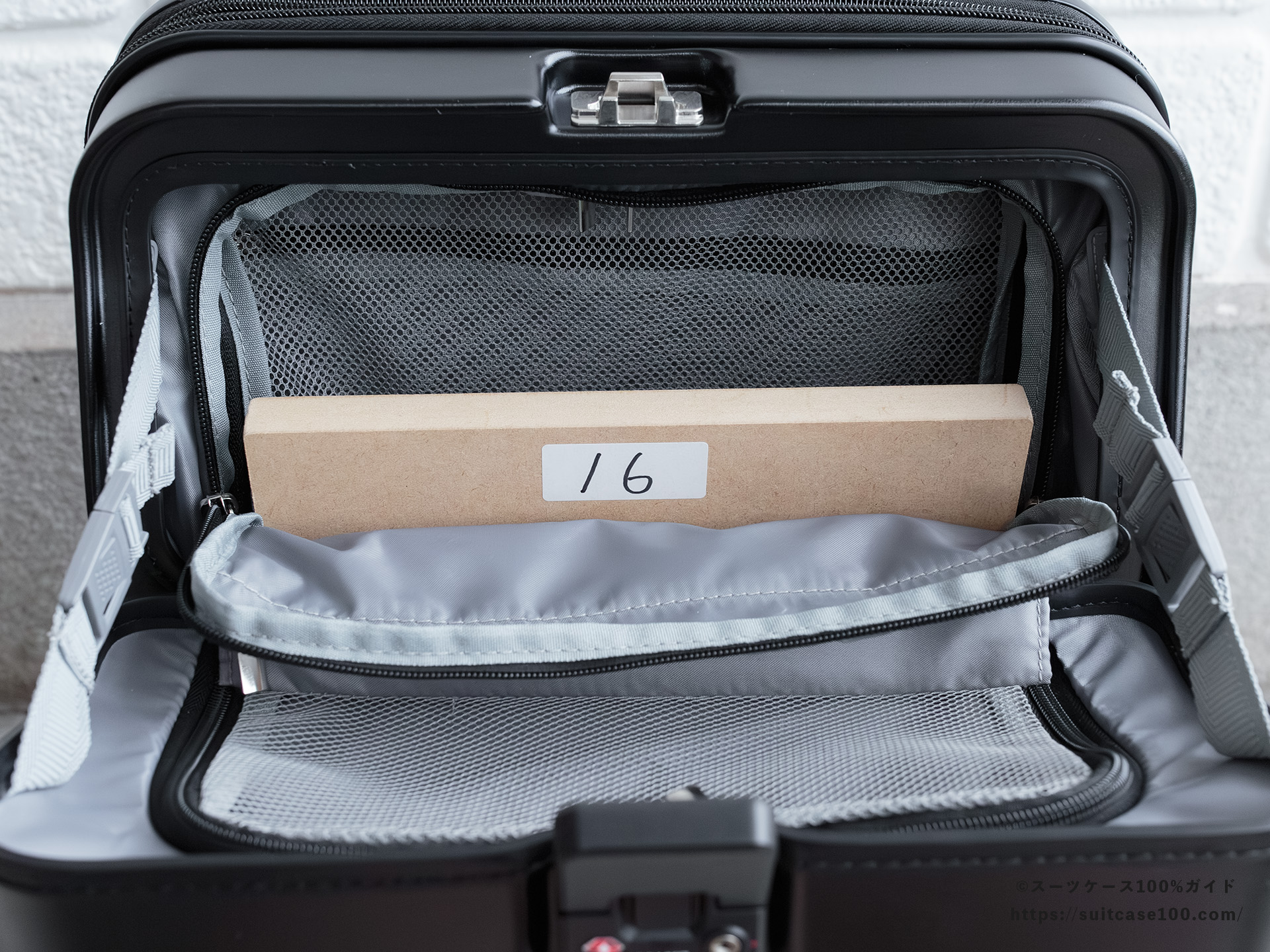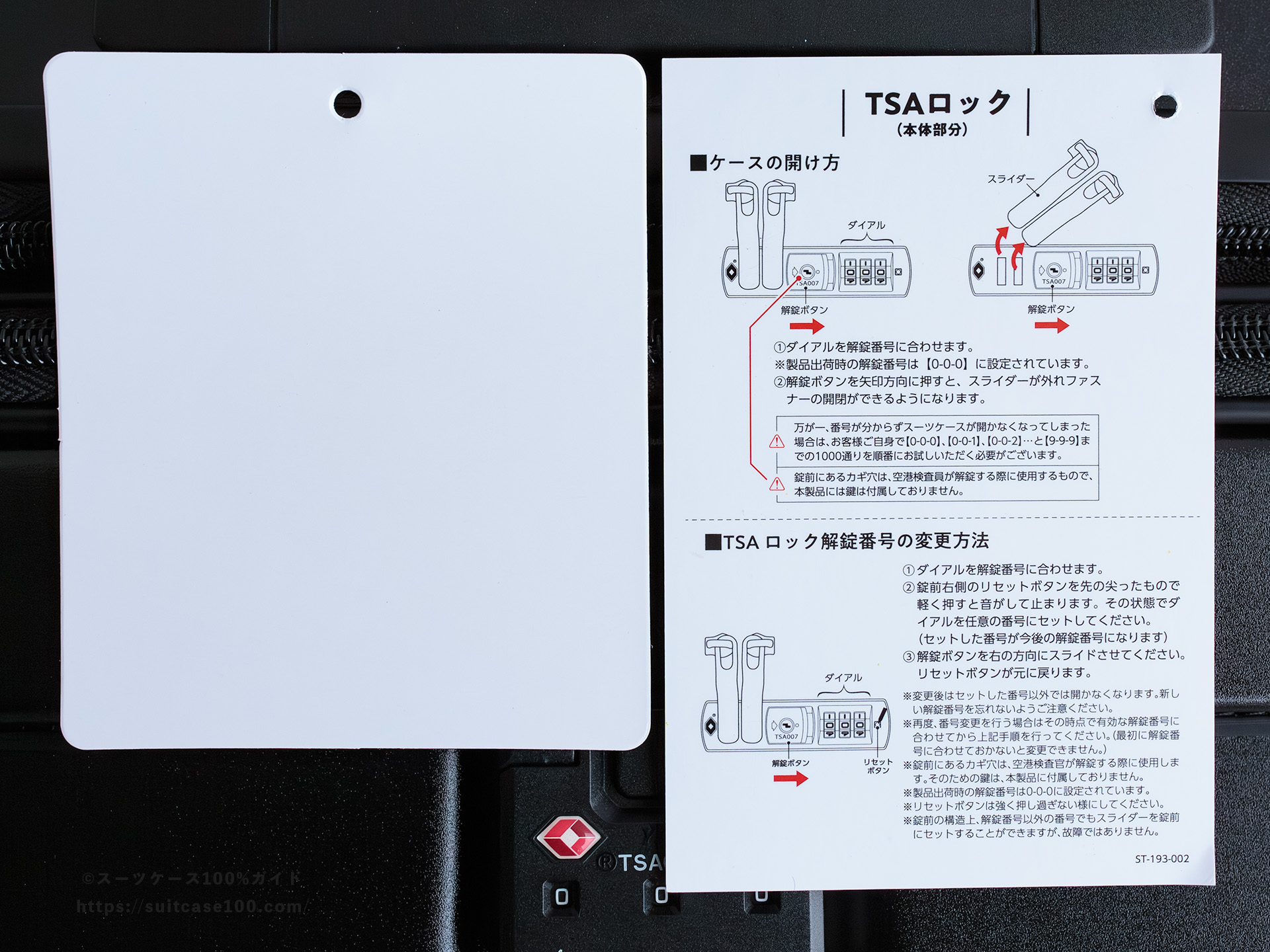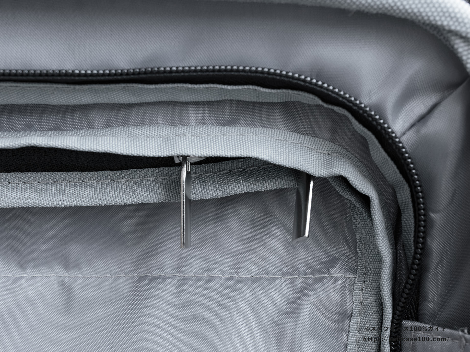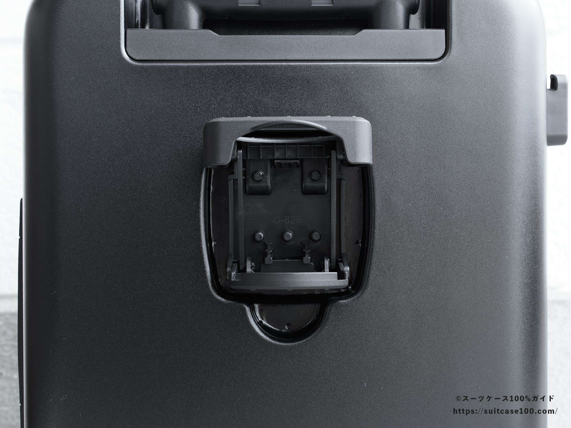 メイン収納側のTSAロックの説明。