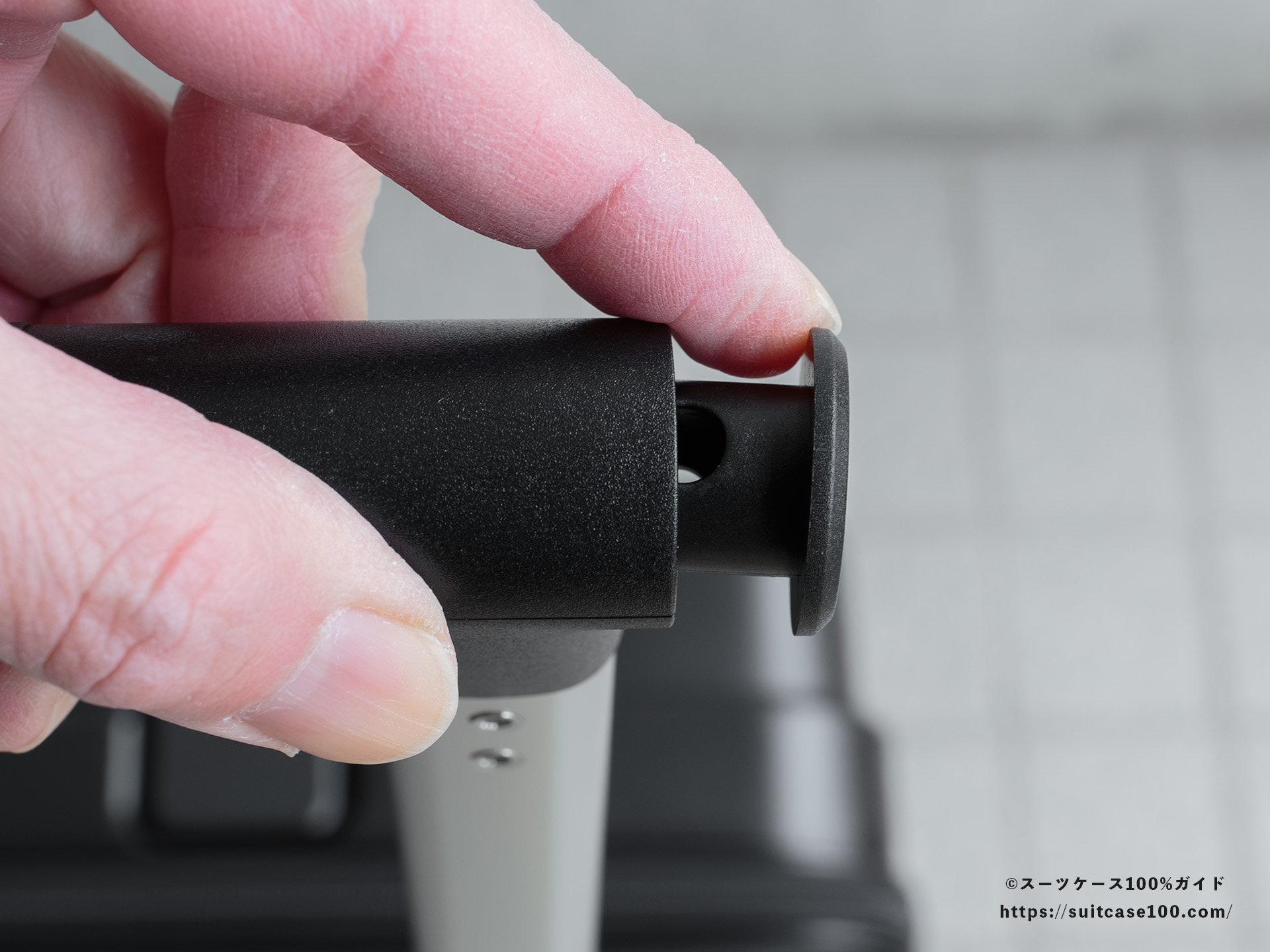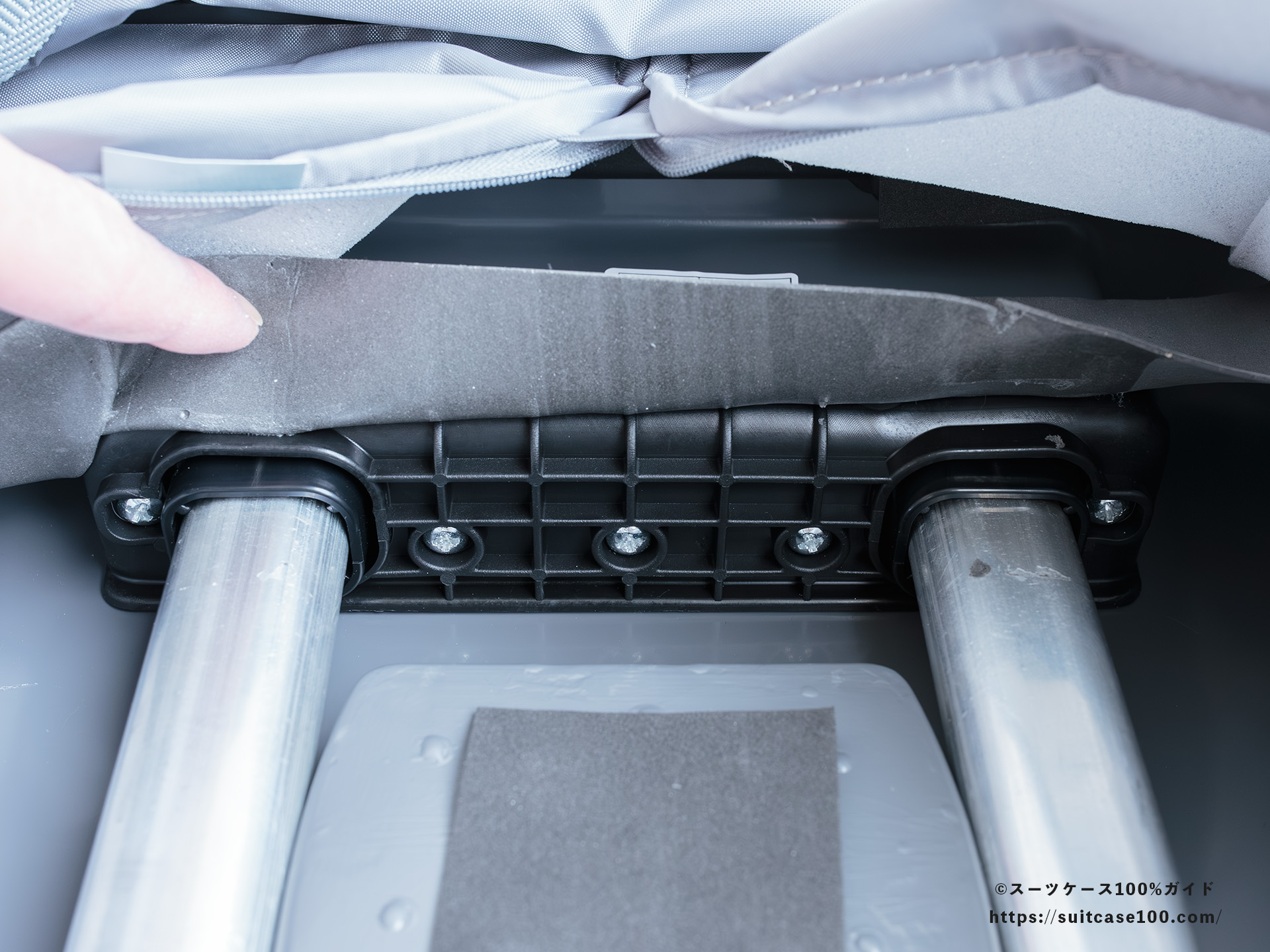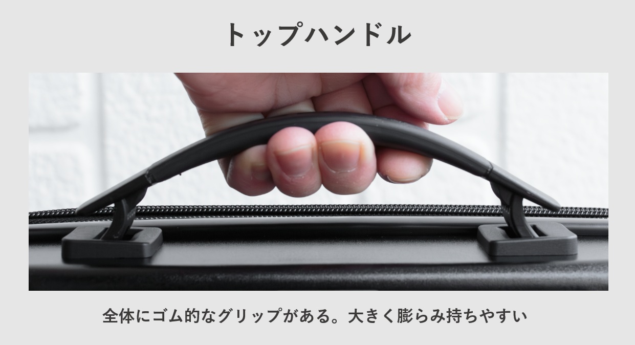 スーツケースとしては珍しいラバーグリップ。