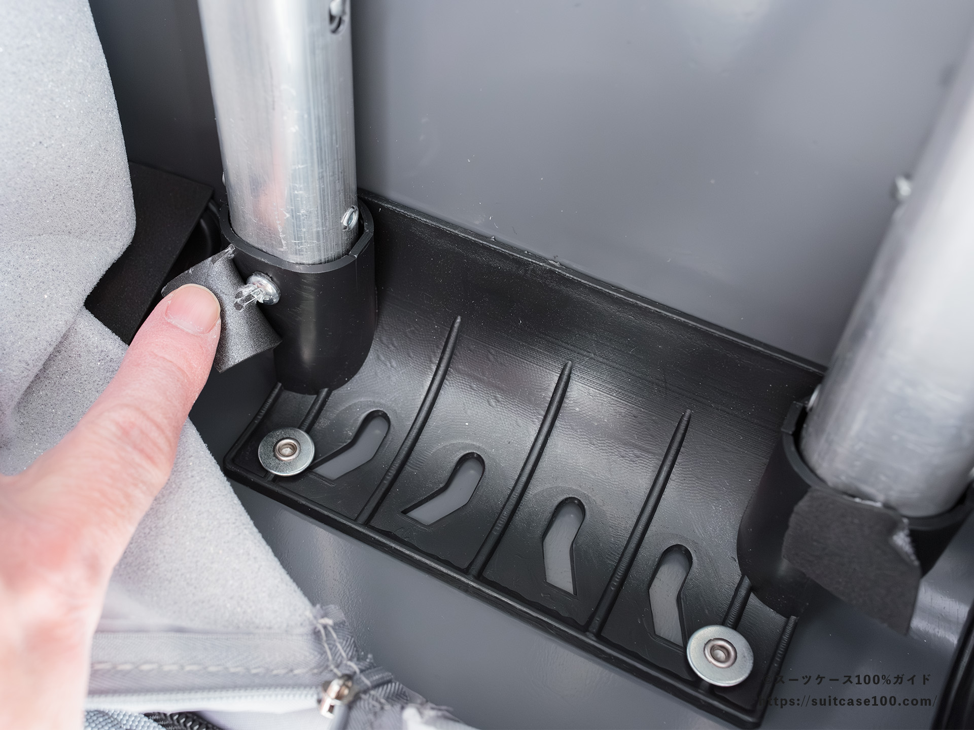 下の黒い部材がキャリーハンドル固定部。