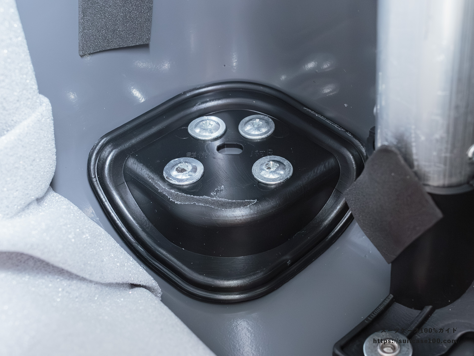 黒いクッションテープはねじ部の保護。