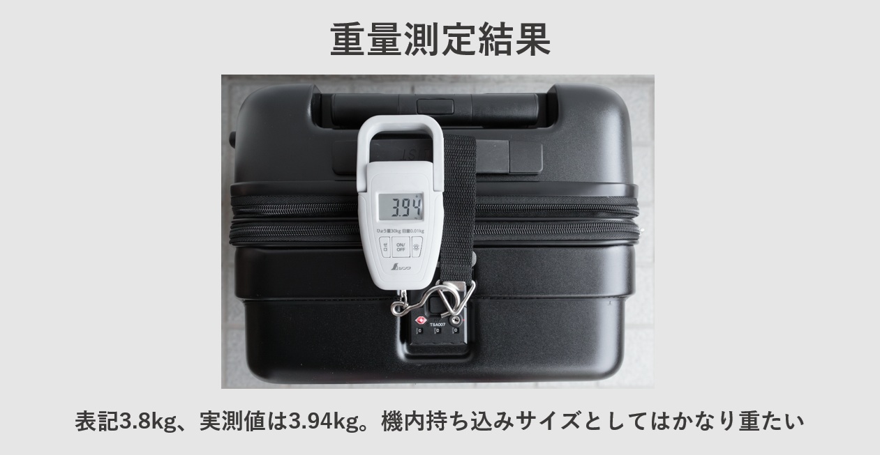 機内持ち込みサイズで約3.9kgは重量オーバーの可能性が高くなる。