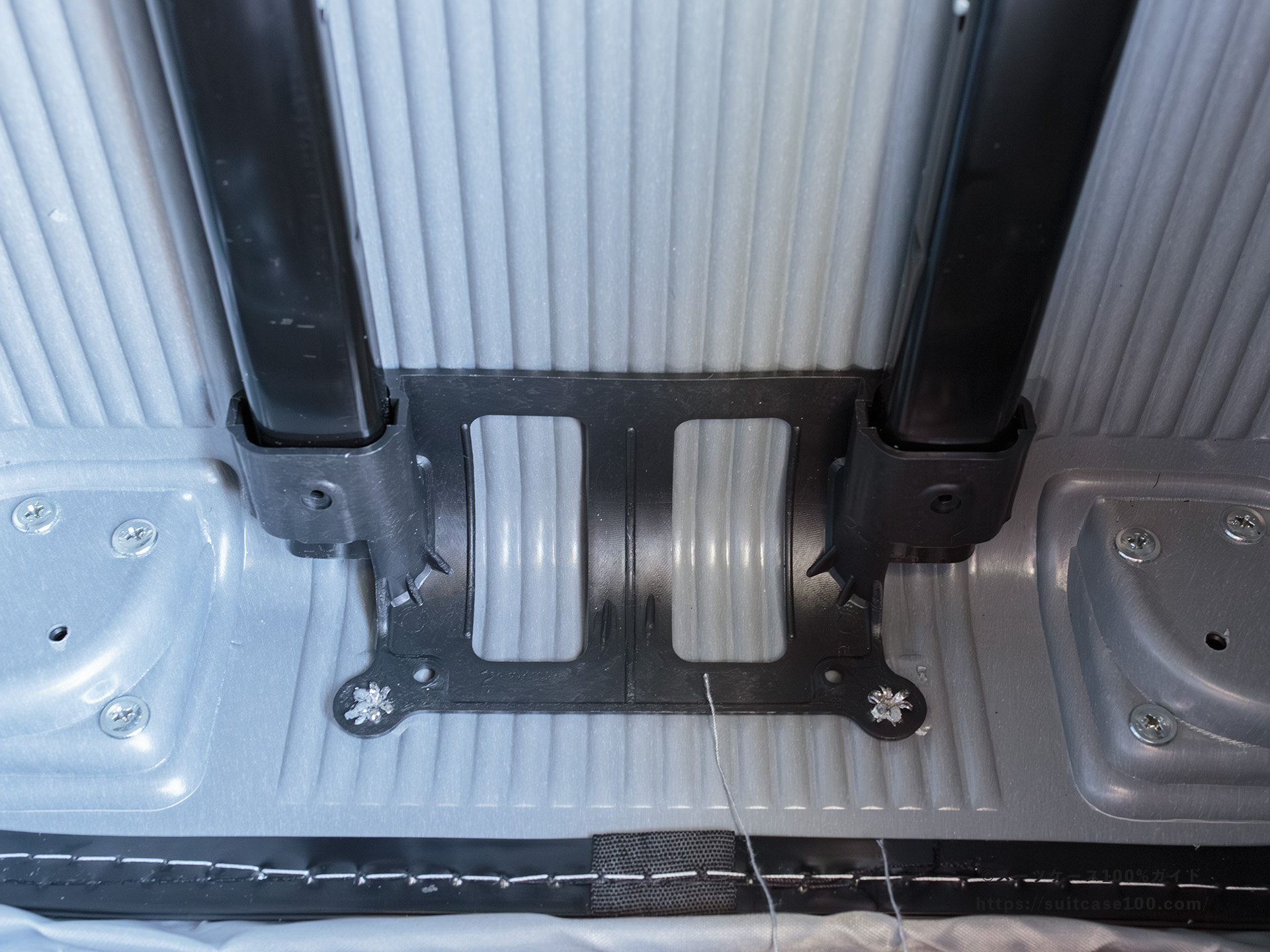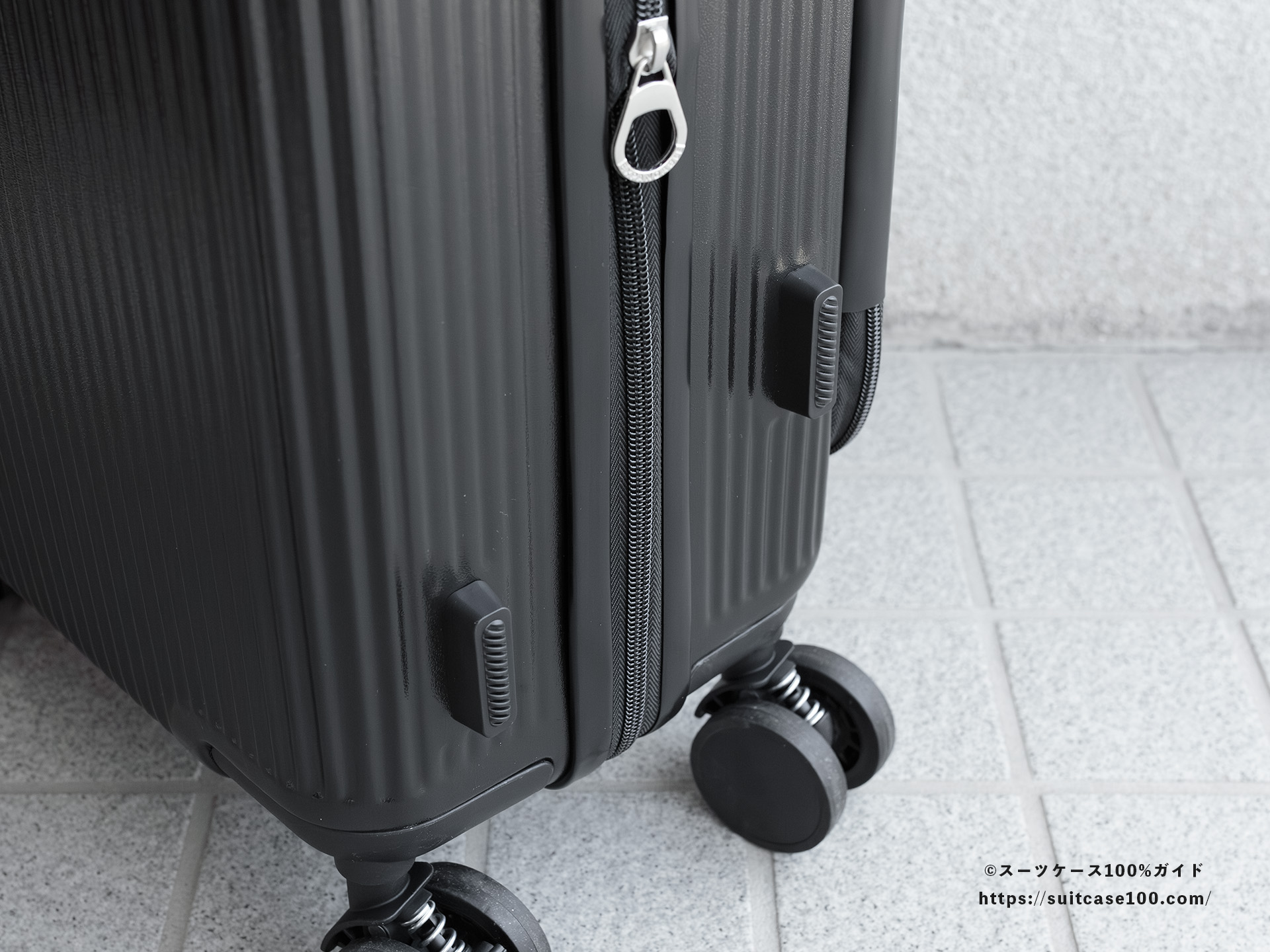 各パーツも全体的に安っぽく、典型的な5000円前後のスーツケース。
