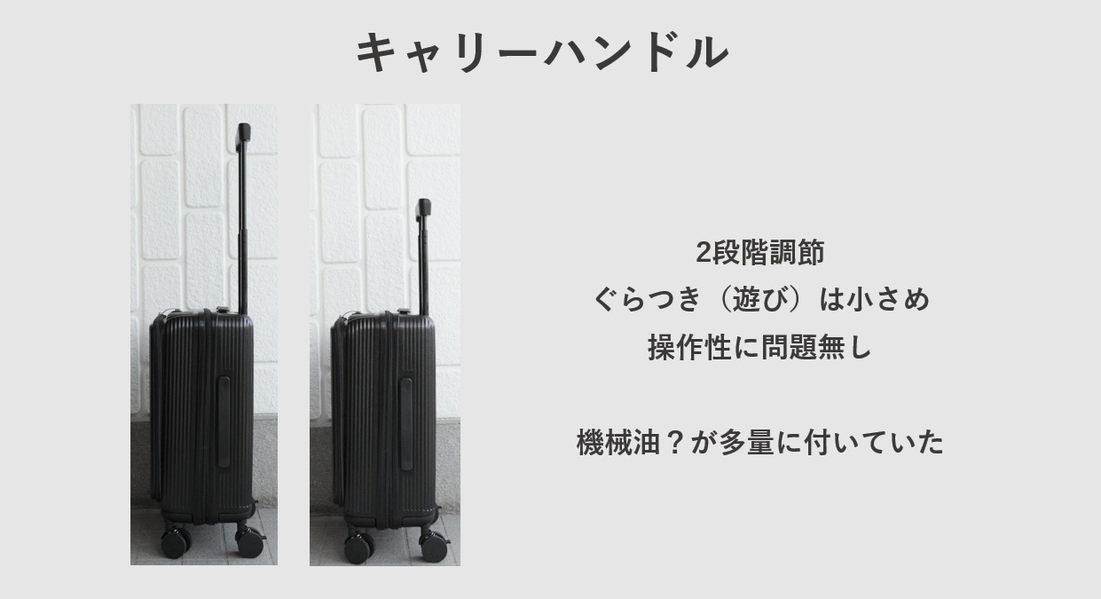 キャリーハンドルは一般的には3段階調節なので、2段階は良くない。