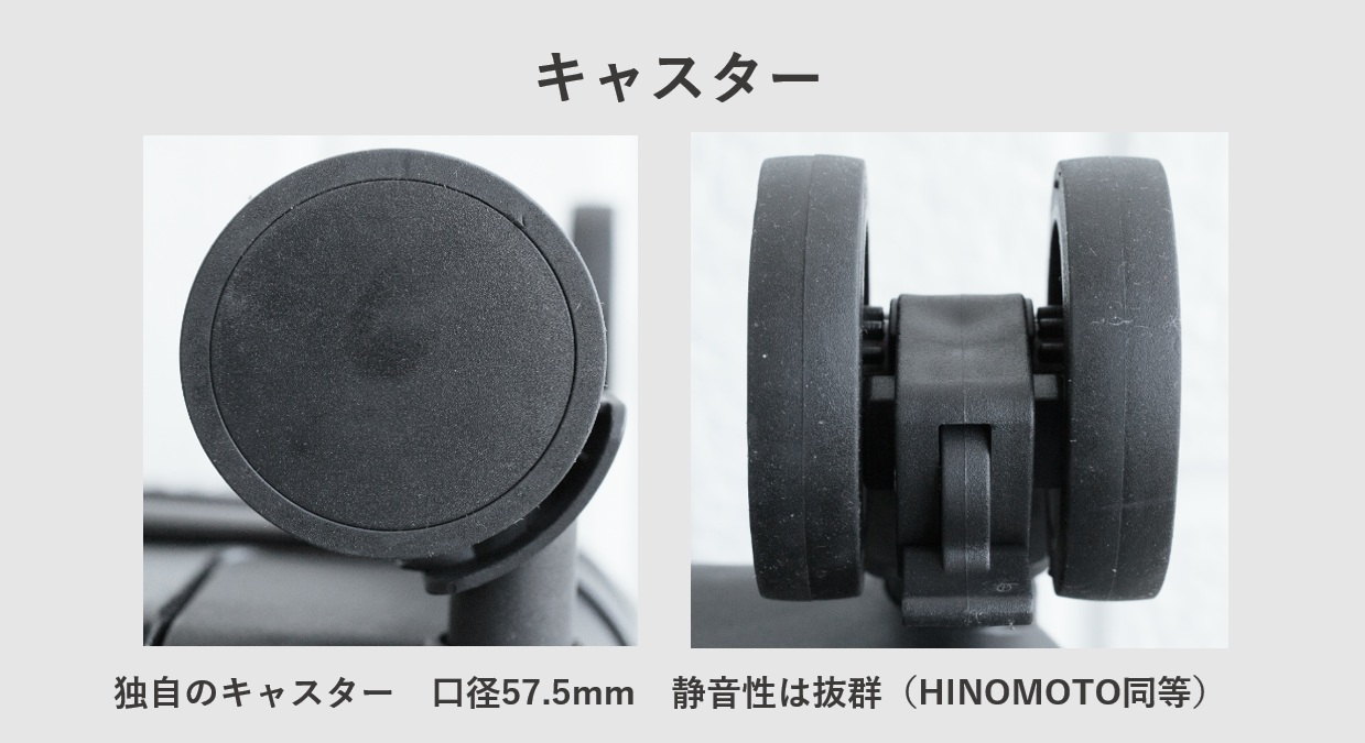 - ✔キャスターの静音性が抜群。口径も57.5mmと大きい