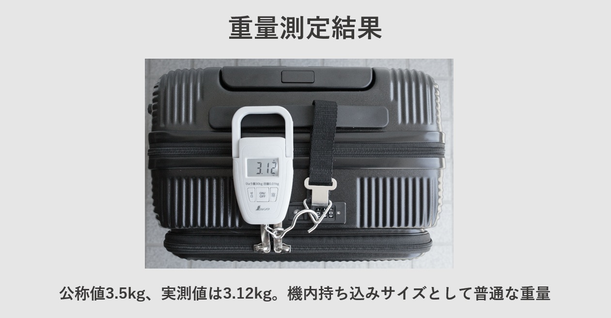 Sサイズ(機内持ち込みサイズ)としては一般的な重量。