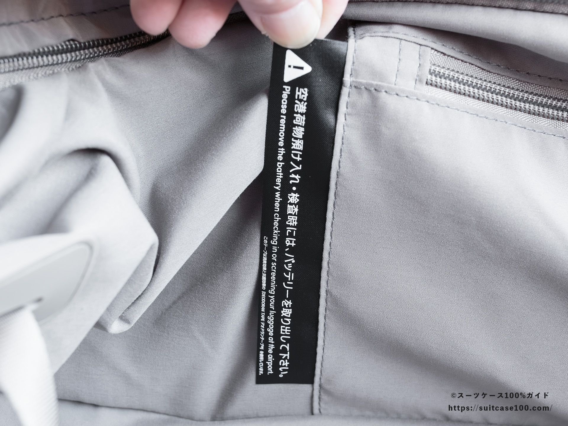 ファスナーはおそらくYKKのセキュリティジッパー(RCW:不正開閉防止ファスナー)。