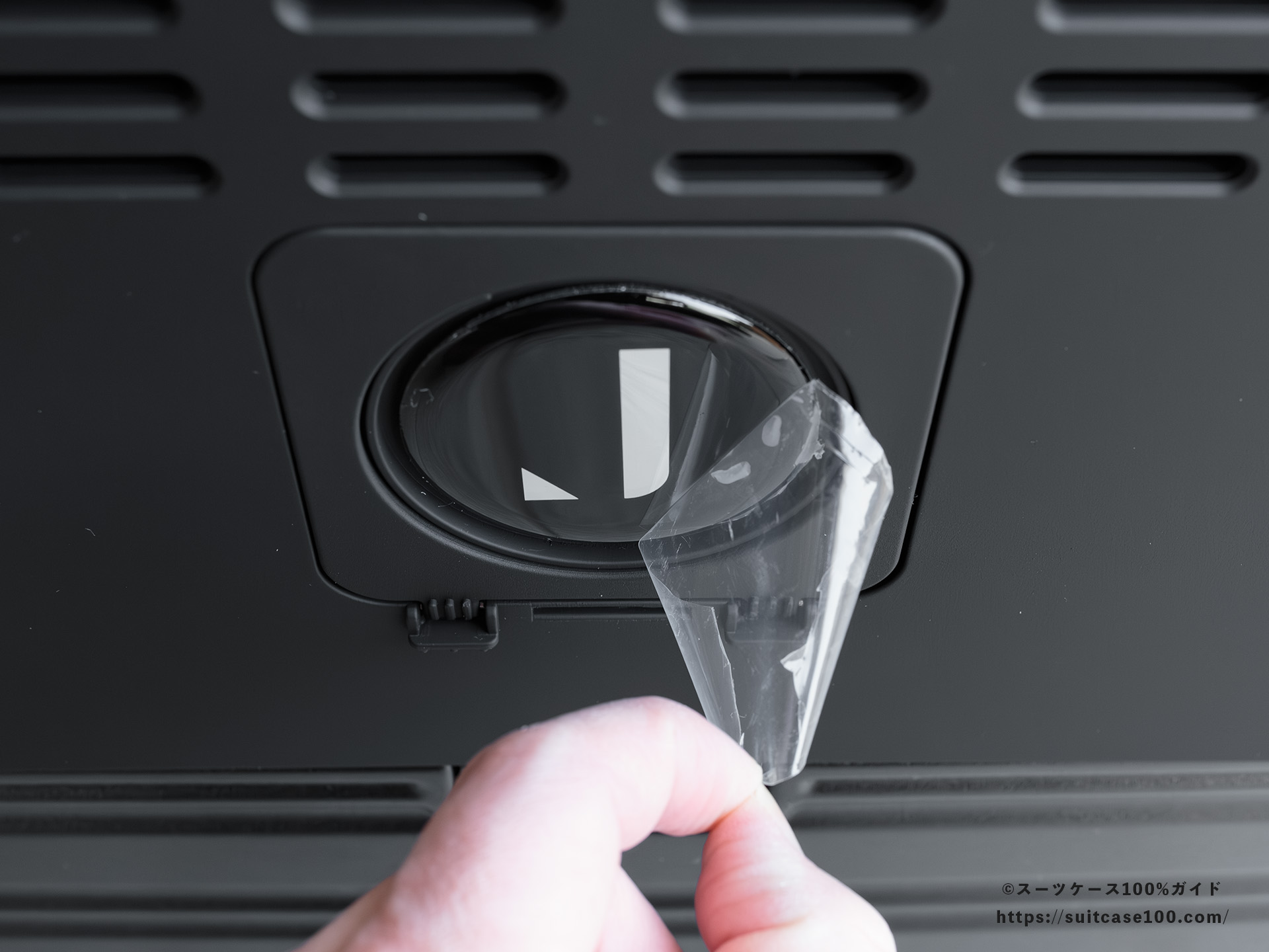 ハンドル部と背面のロゴ部に保護ビニールがありました。