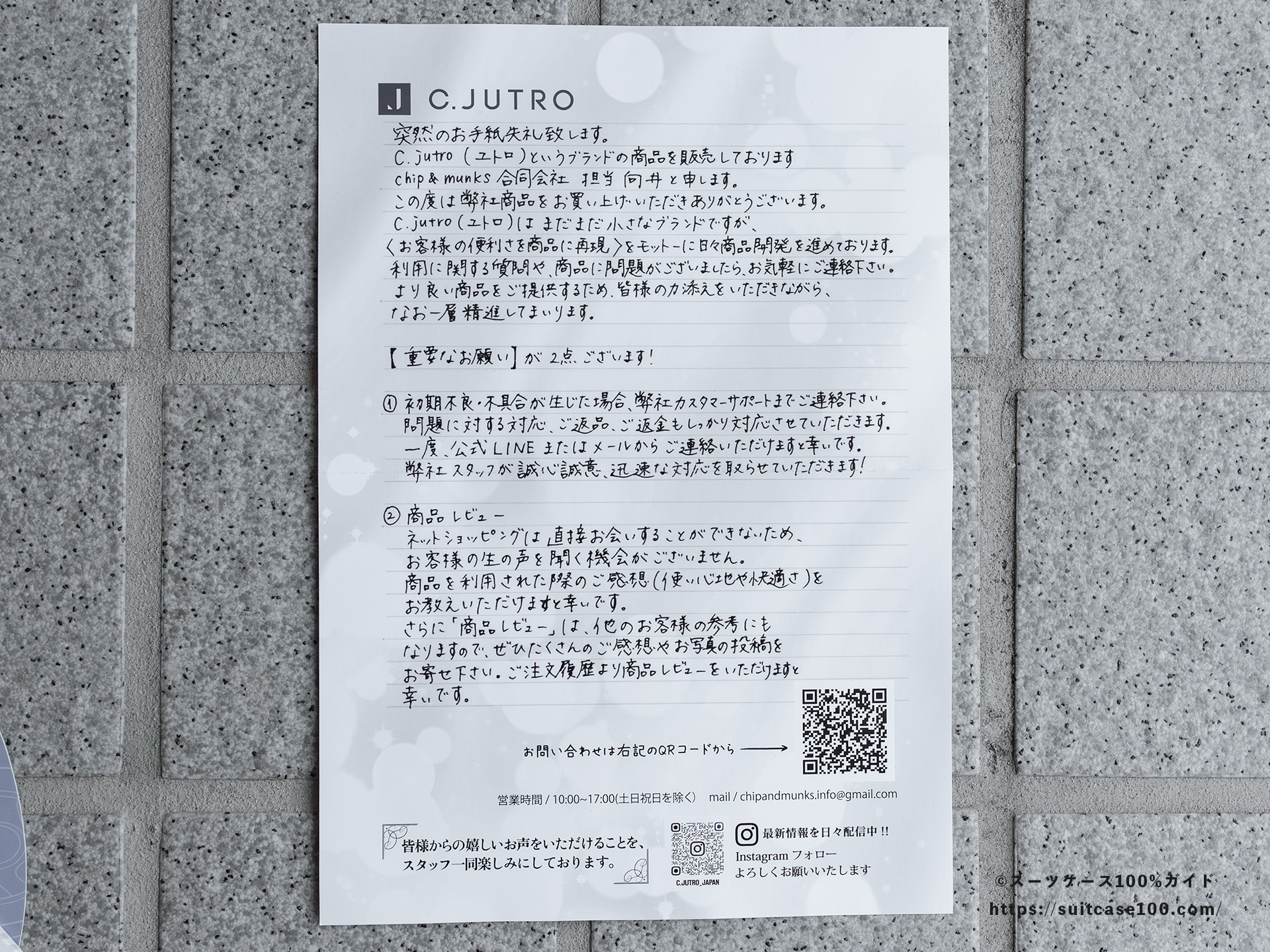 ショップからのお手紙。