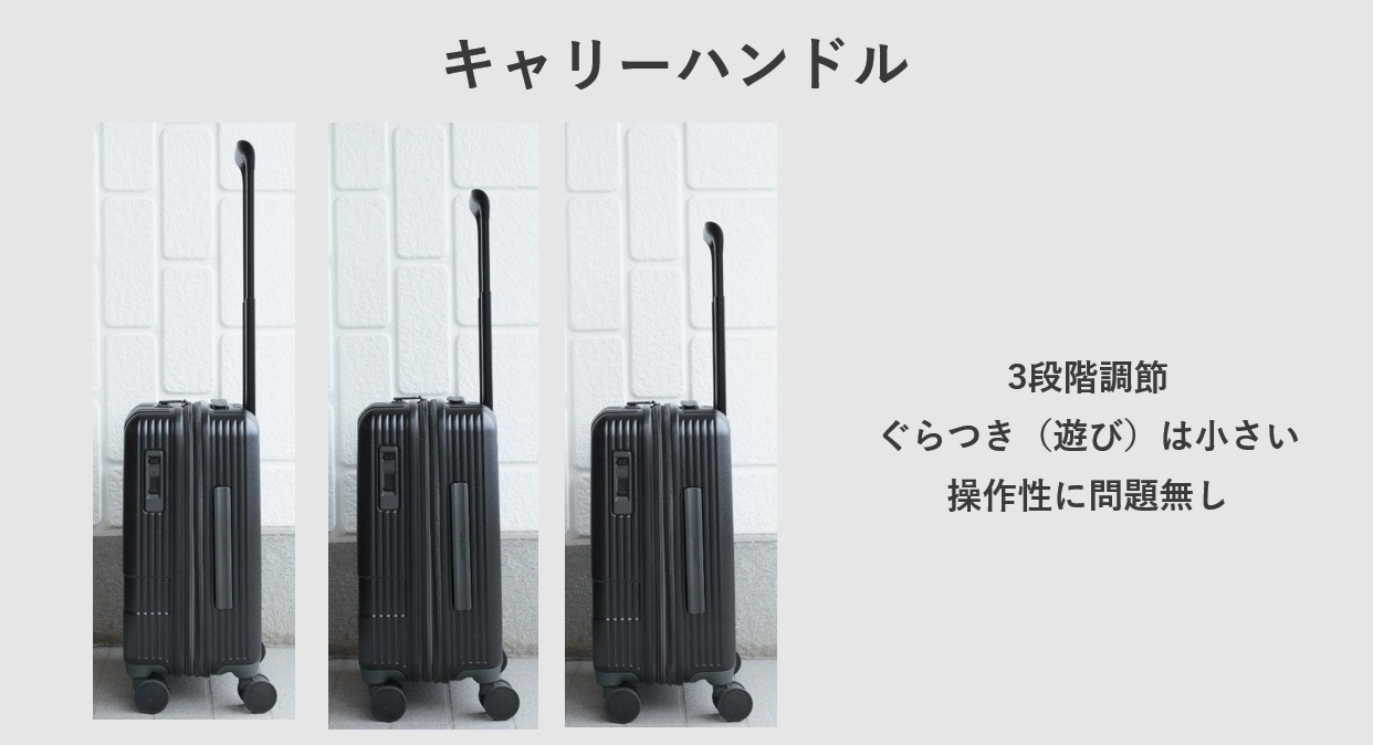 - ✔キャリーハンドルのぐらつきがかなり小さい